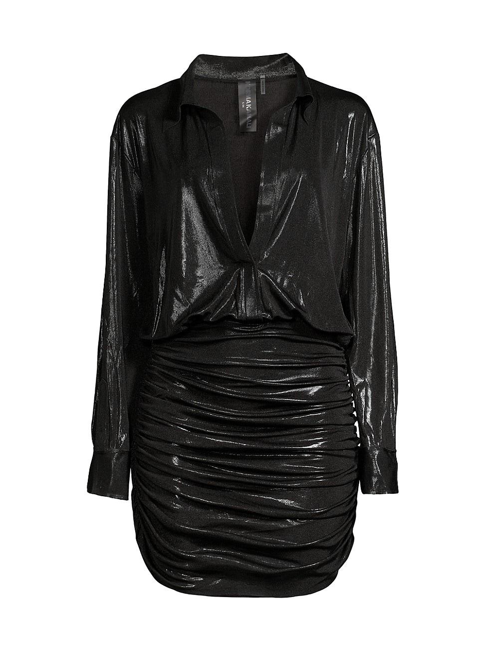 Crafted of a 4-way stretch lam, the Boyfriend shirtdress by Norma Kamali is designed with a relaxed top and curve-hugging shirred skirt. Spread collar V-neck Long sleeves Pullover style 95% polyester/5% spandex Dry clean Imported SIZE & FIT Model measurements: 510 tall Model is wearing US size Small. Dress Collections - Contemporary Evening > Norma Kamali > Saks Fifth Avenue > Barneys. Norma Kamali. Color: Black. Size: Large.