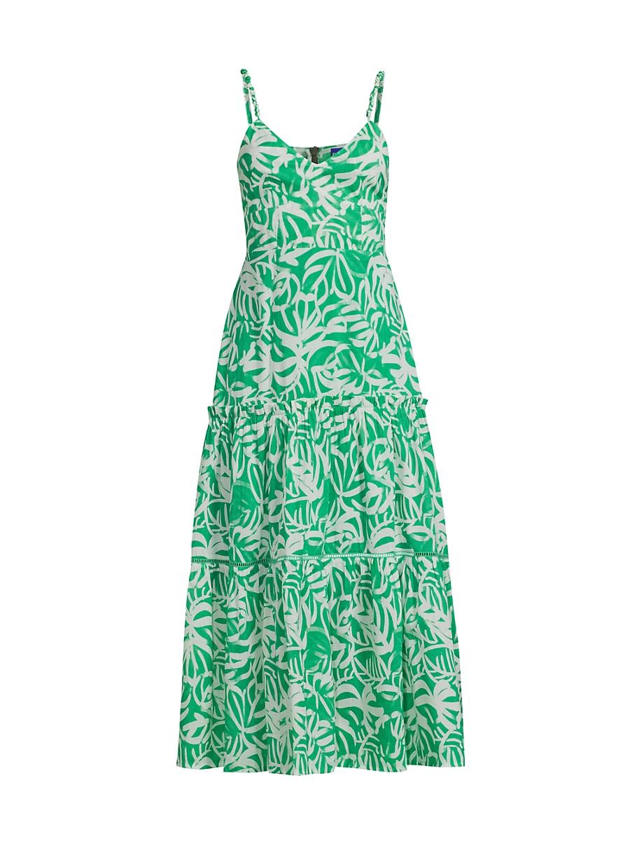 Ros Gardens Brittany midi-dress features a light cotton design with a bright leafy print, ladder trimming, and pompom adjustable straps. V-neck Adjustable straps Concealed back zip closure 100% cotton Hand wash Imported SIZE & FIT About 47 from shoulder to hem Model measurements: 510 tall Model is wearing a US size Small. Modern Collections - Modern Trend > Ros Garden > Saks Fifth Avenue > Barneys. Ros Garden. Color: Green Mirna. Size: Medium.