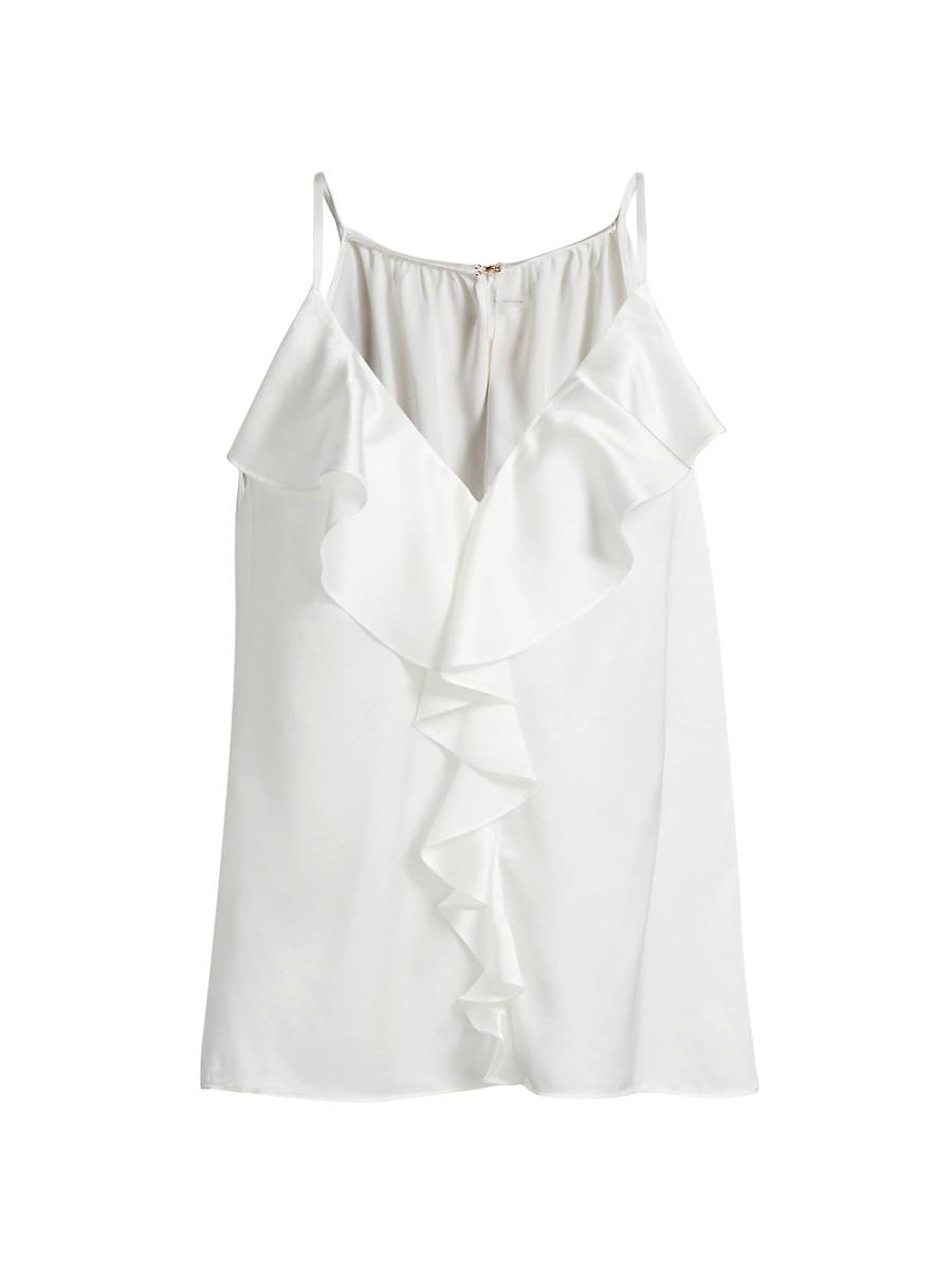 Ramy Brooks Bronwyn silk top is styled with a V-neck, ruffled trim at the front, and a keyhole at the back. V-neck Sleeveless Spaghetti straps Back hook-and-eye keyhole closure 92% silk/8% spandex Dry clean Imported SIZE & FIT About 25 from shoulder to hem Model measurements: 510 tall Model is wearing a US size Small. Contemporary Sportswear - Contemporary Collections > Ramy Brook > Saks Fifth Avenue > Barneys. Ramy Brook. Color: Ivory. Size: Large.