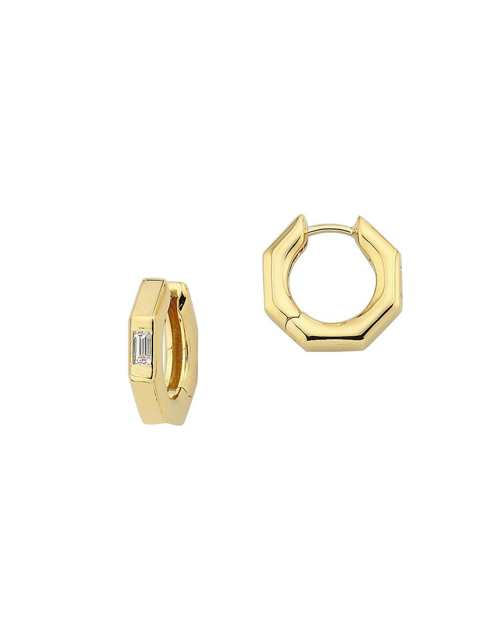 From the Bubble Collection. Showcasing a geometric silhouette, Aschers hoop earrings are crafted of polished 18K yellow gold flush-set with sparkling baguette diamonds. Diamonds, 0.13 tcw Diamond color grade: E-F Diamond clarity grade: VS 18K yellow gold Leverback Imported SIZE About 0.59 diameter. Fashion Jewelry - Semi Prec Coll C > Ascher > Saks Fifth Avenue > Barneys. Ascher. Color: Gold.