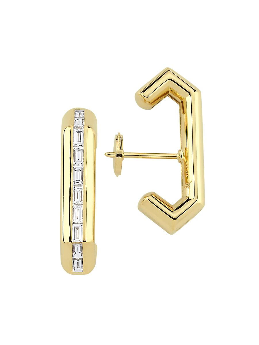 From the Bubble Collection. Featuring a chic, angular silhouette that rests above and below the earlobe, Aschers Crescent earrings are crafted of 18K yellow gold channel-set with sparkling baguette diamonds. Diamonds, 1.34 tcw Diamond color grade: E-F Diamond clarity grade: VS 18K yellow gold Post back Imported SIZE About 1.18L. Fashion Jewelry - Semi Prec Coll C > Ascher > Saks Fifth Avenue > Barneys. Ascher. Color: Gold.