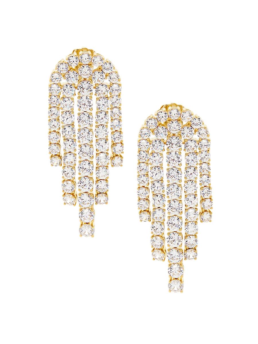 From the Bubbly Collection. Adriana Orsinis 18K-gold-plated tennis chandelier earrings glitter with strands of round cubic zirconia. Cubic zirconia 18K-gold-plated sterling silver Butterfly back Imported SIZE About 0.75W x 1.88L. Fashion Jewelry - Adriana Orsini > Adriana Orsini > Saks Fifth Avenue > Barneys. Adriana Orsini. Color: Gold Crystal.