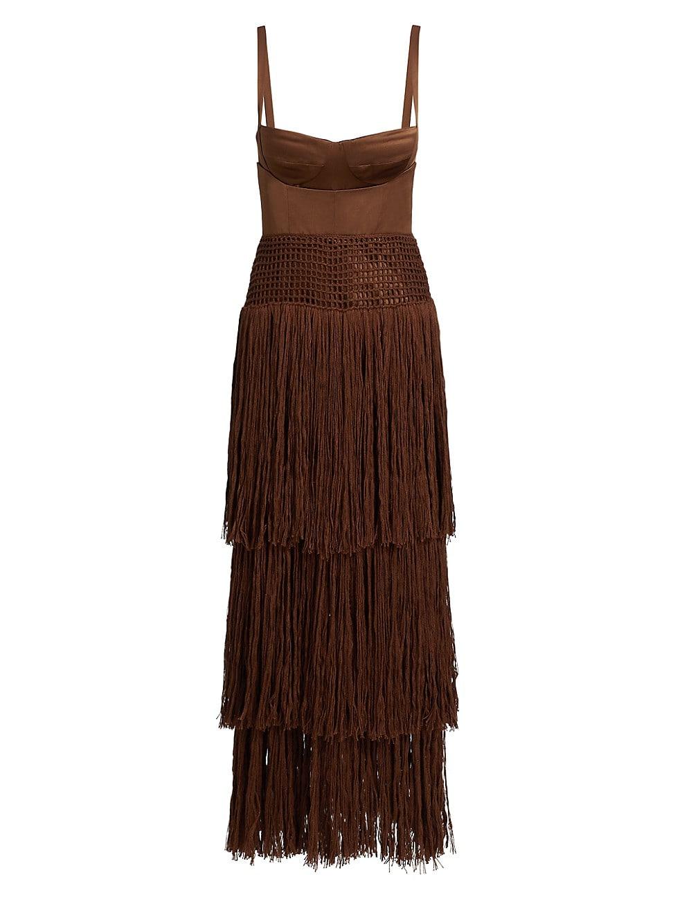 Alejandra Alonso Rojas crochet dress showcases a satin-finished bustier bodice with molded cups and a sweetheart neckline. This piece is elevated with a captivating fringe skirt. Sweetheart neck Fixed straps Molded cups Fringe skirt Back zip closure 100% silk Dry clean Made in USA of imported materials SIZE & FIT About 56 from shoulder to hem Bust: about 33 Waist: about 27 Hips: about 38 Model measurements: 510 tall Model is wearing a US size Small. Designer Lifestyle - Designer Lifestyle Multi > Alejandra Alonso Rojas > Saks Fifth Avenue > Barneys. Alejandra Alonso Rojas. Color: Ecru. Size: Medium.