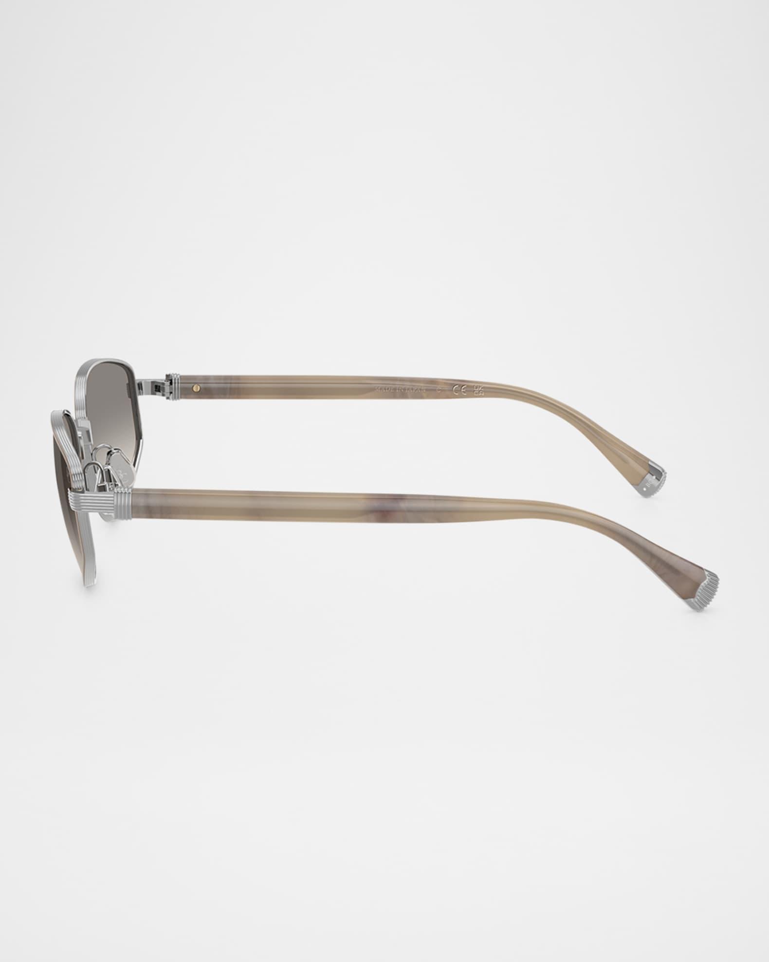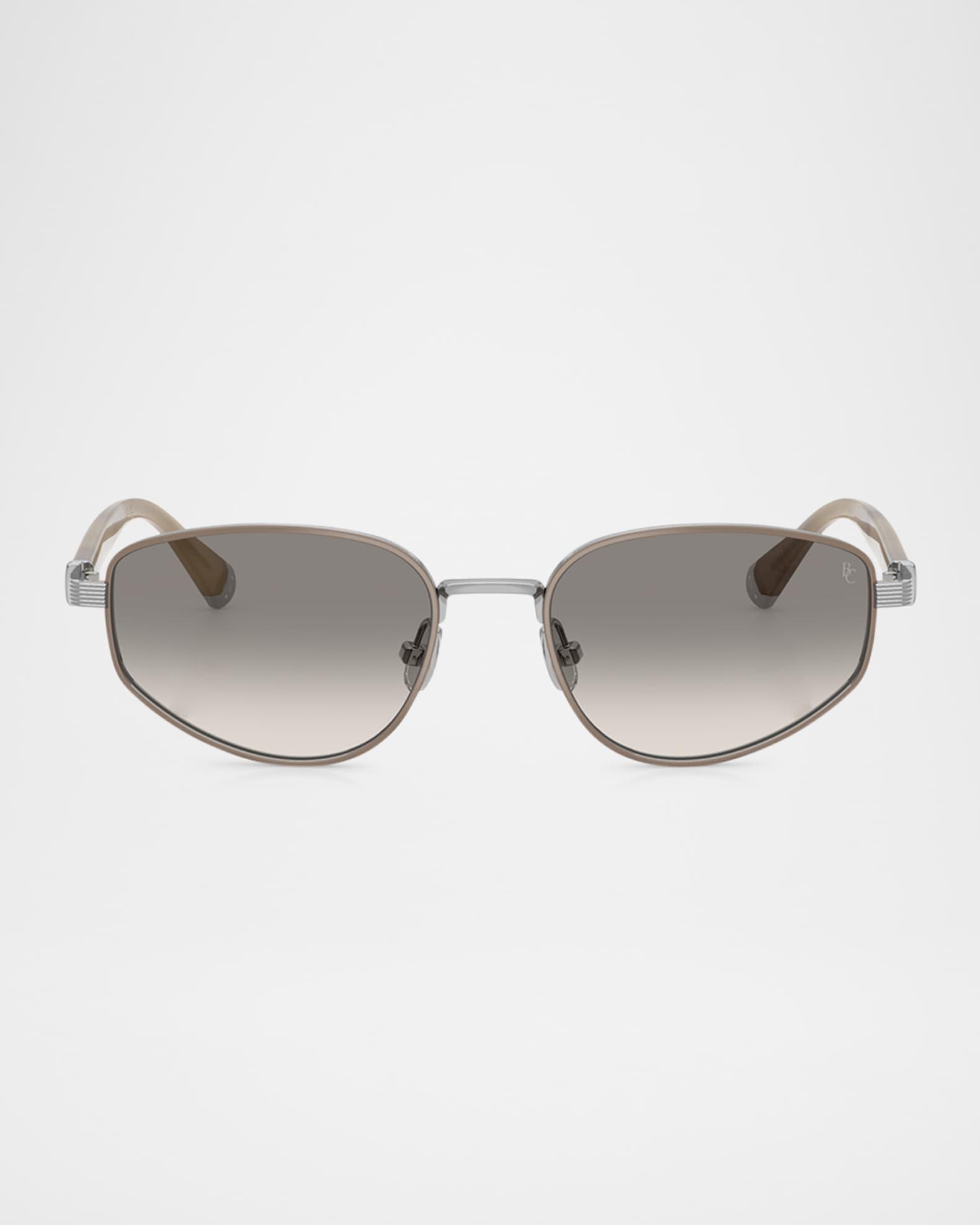 Brunello Cucinelli "BC2008ST" oval sunglasses in titanium Lens/bridge/temple (in mm): 54-18-145 Gradient lenses Logo on corner Adjustable nose pads Thin, tapered arms Comes with case and cloth Titanium Spot clean 100% UVA/UVB protection Made in Italy Proposition 65 warning for California residents