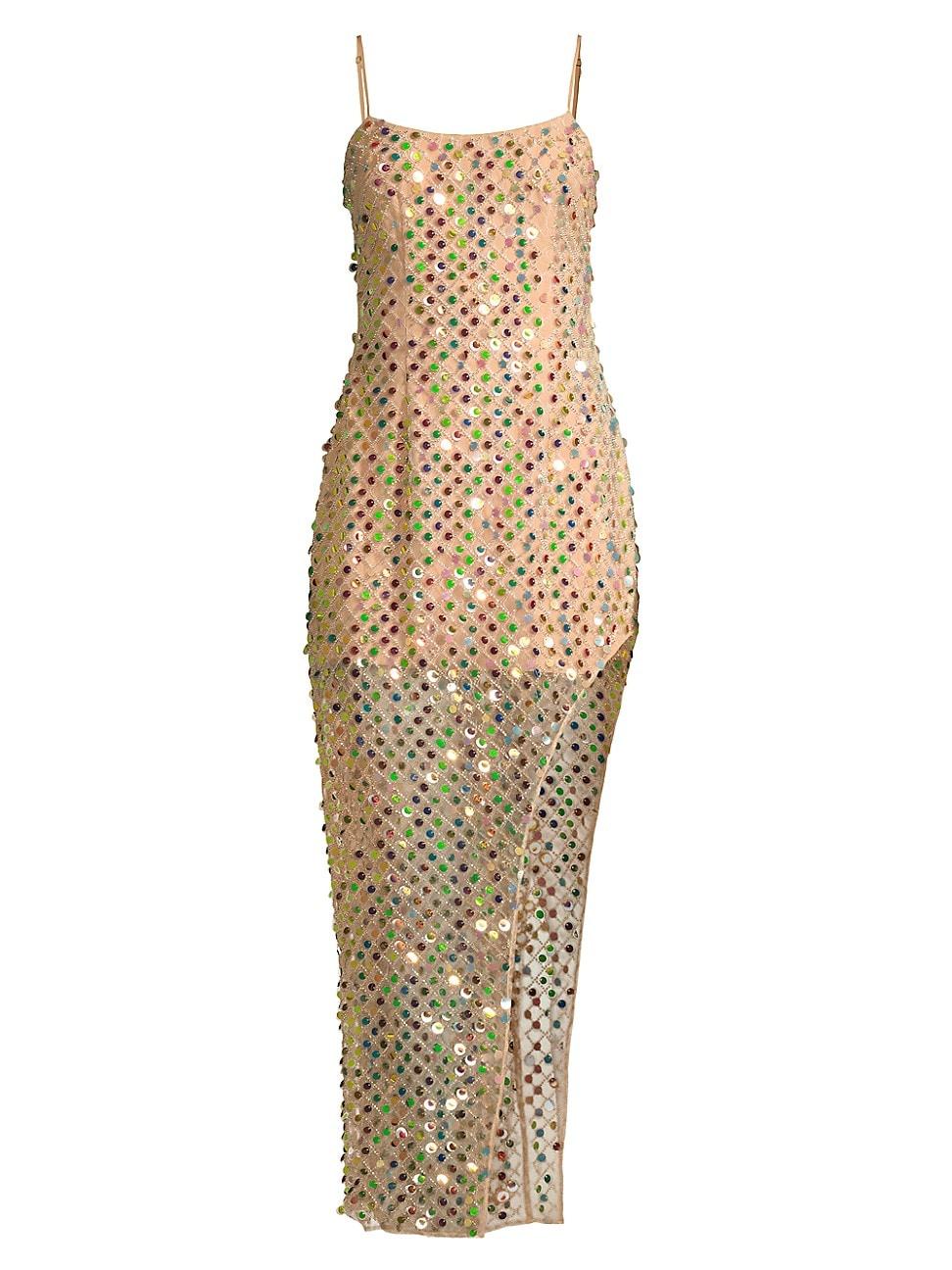 From the Mirage Collection. Elliatts Cabana midi-dress features a fitted silhouette embellished with beads and multicolored sequins. A side thigh-high slit completes this playful, shimmering style. Scoopneck Adjustable spaghetti straps Thigh-high slit Exposed back zip closure 100% polyester Lined Dry clean only Imported SIZE & FIT About 57 from shoulder to hem Model measurements: 510 tall Model is wearing a US size Small. Dress Collections - Contemporary Evening > Elliatt > Saks Fifth Avenue > Barneys. Elliatt. Size: Small.