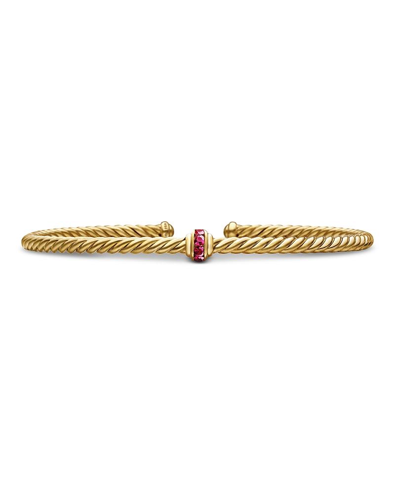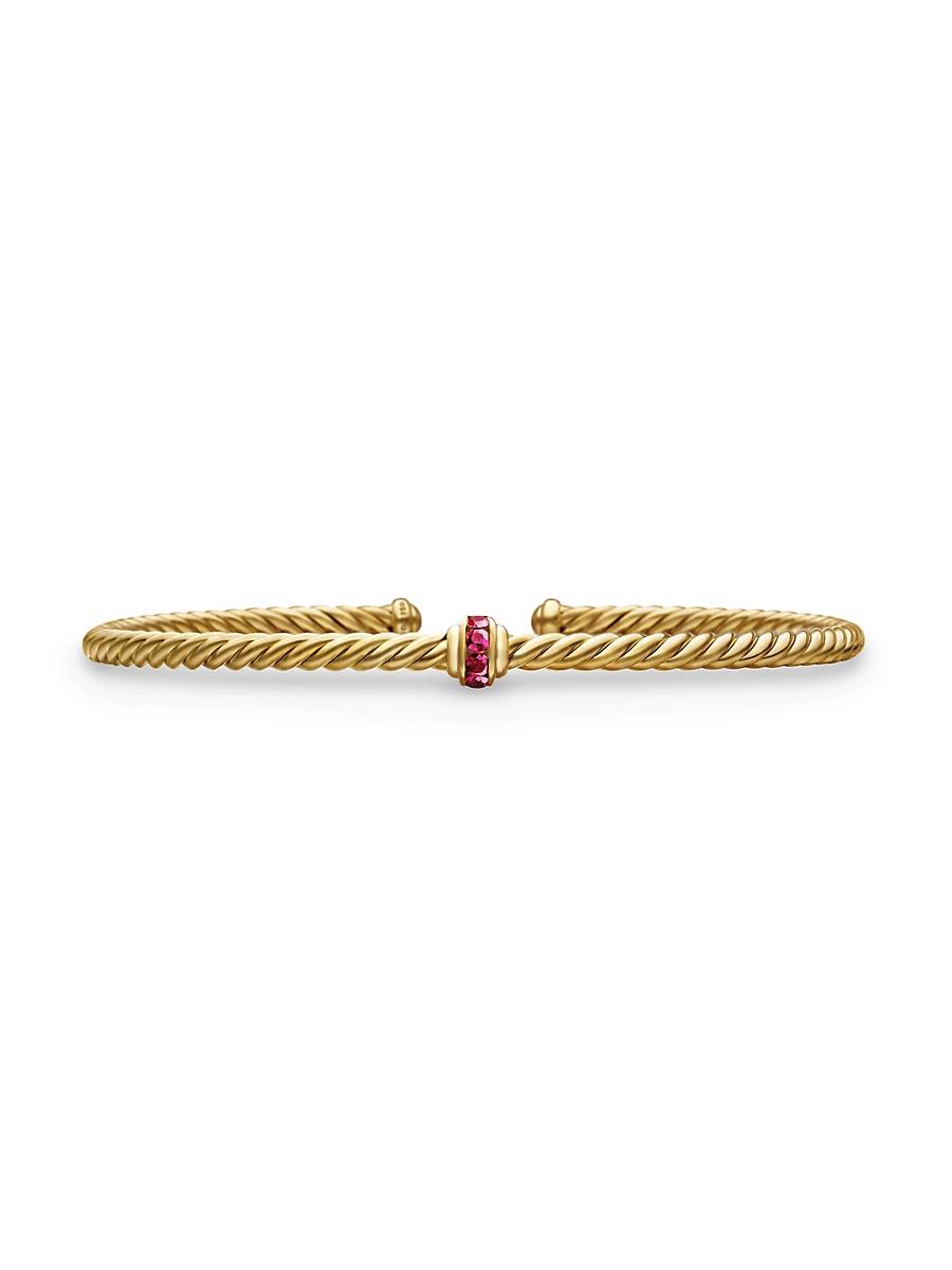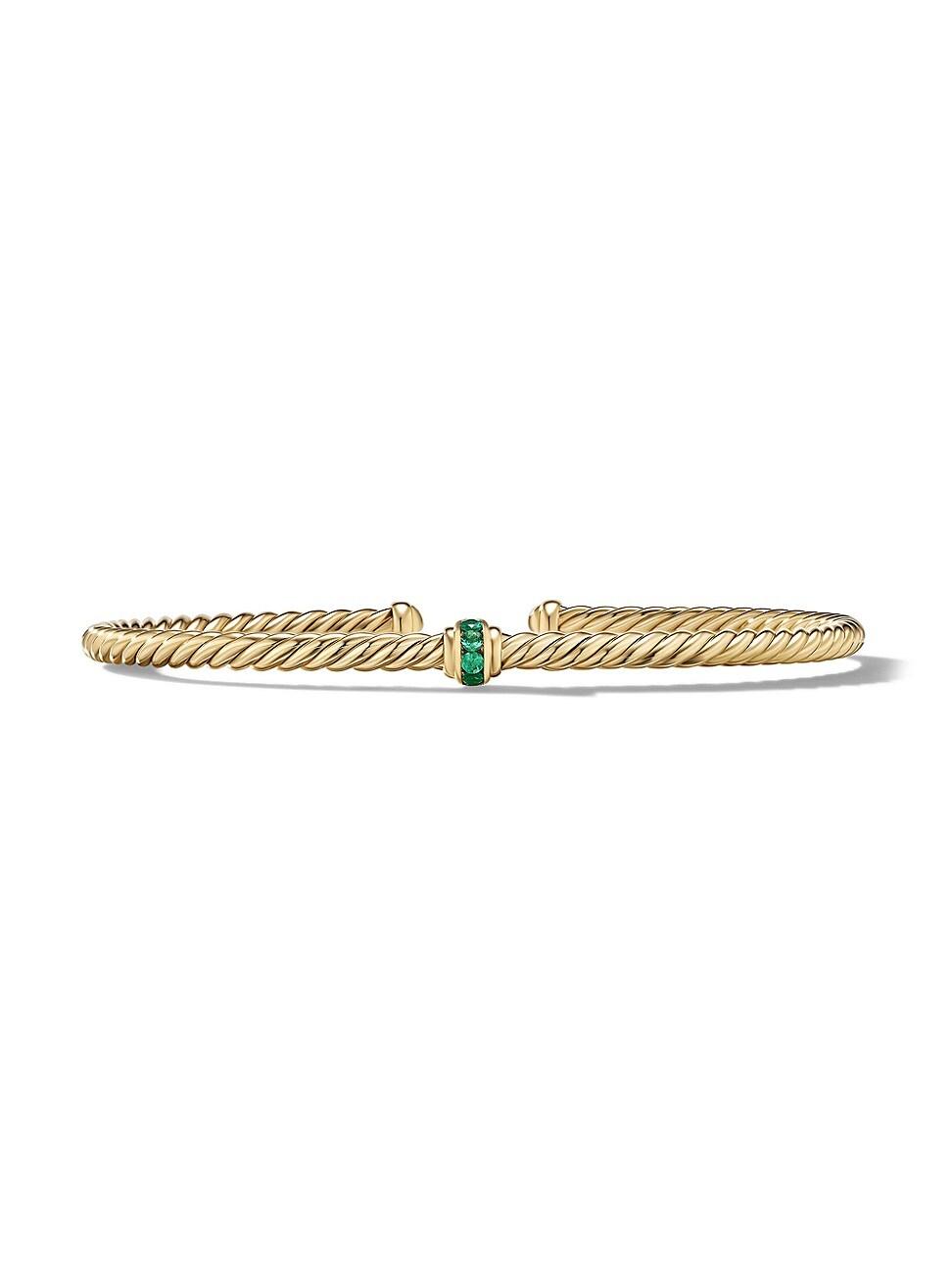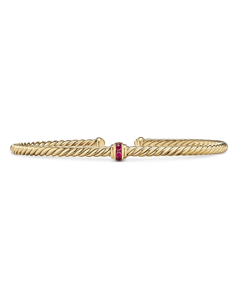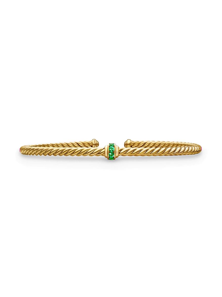 David Yurmans artistic signature, Cable began as a bracelet that he hand-twisted from 50 feet of wire. For the past 30 years, he has evolved the twisted helix into a myriad of designs. 18-karat yellow gold Pav rubies, 0.12 total carat weight Pav blue sapphires, 0.12 total carat weight Pav emeralds, 0.12 total carat weight Bracelet, 3mm Cablespira is a patented DY construction that is highly flexible and exceptionally comfortable to wear Imported ABOUT THE BRAND David, a sculptor, and his wife, Sybil, a painter, launched their innovative jewelry brand in 1980 in New York City. Since then, the American design house has pioneered cutting-edge collections-from its iconic combination of sterling silver and diamonds to signature pinky rings. Today, with their son Evan, the Yurmans continue to deliver timeless pieces inspired by nature, art, ancient symbols and Manhattans stunning architecture. Lsd Jewelry - David Yurman > David Yurman > Saks Fifth Avenue > Barneys. David Yurman. Color: Ruby. Size: Large.