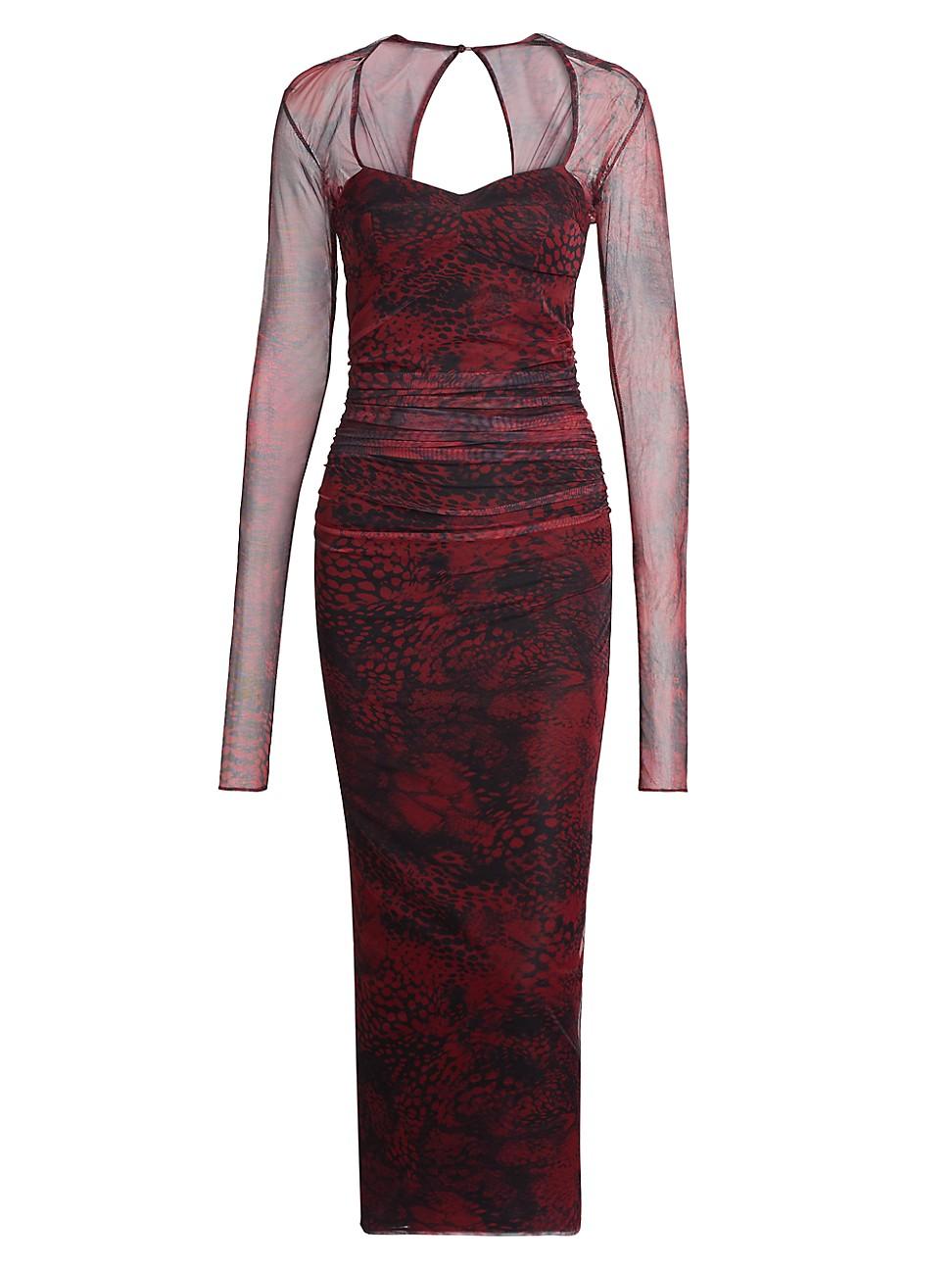 Finished in an abstract print, Amanda Uprichards Cade printed midi-dress showcases a body-con silhouette and sheer long sleeves. Sweetheart neck Long sleeves Back keyhole button closure 85% polyester/15% elastane Lining: 95% rayon/5% spandex Machine wash Imported SIZE & FIT About 52 from shoulder to hem Model measurements: 510 tall Model is wearing a US size Small. Contemporary Sportswear - Trend > Amanda Uprichard > Saks Fifth Avenue > Barneys. Amanda Uprichard. Color: Viper. Size: Medium.
