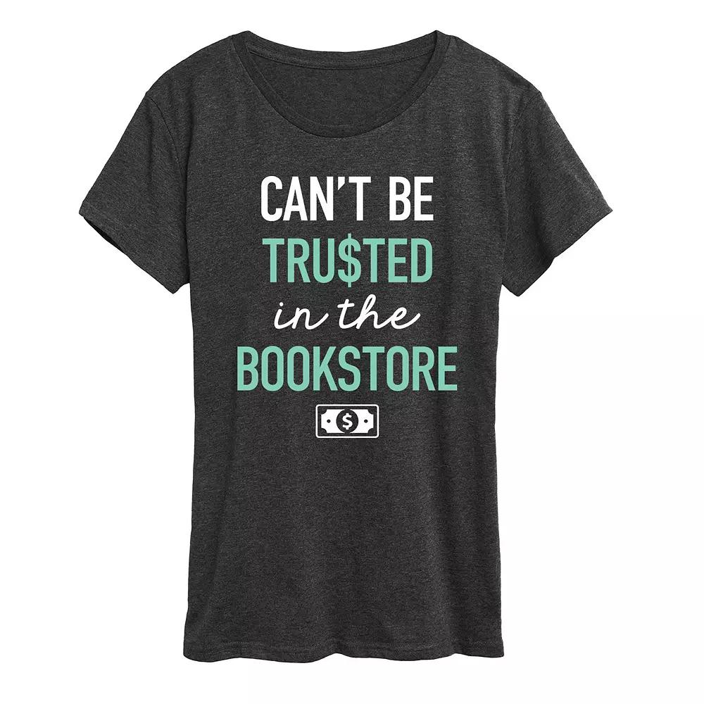 Heather Charcoal Cant Be Trusted Graphic Tee - Women & Plus. Relaxed-fit cotton-blend tee features a cheeky graphic. Full graphic text: Cant be trusted in the bookstore.Size S: 26 long from high point of shoulder to hemSize & fit: Relaxed-fit garment with a slightly longer hem. Fits true to size.50% cotton / 50% polyesterMachine wash; tumble dryImported, screen printed in the USA
