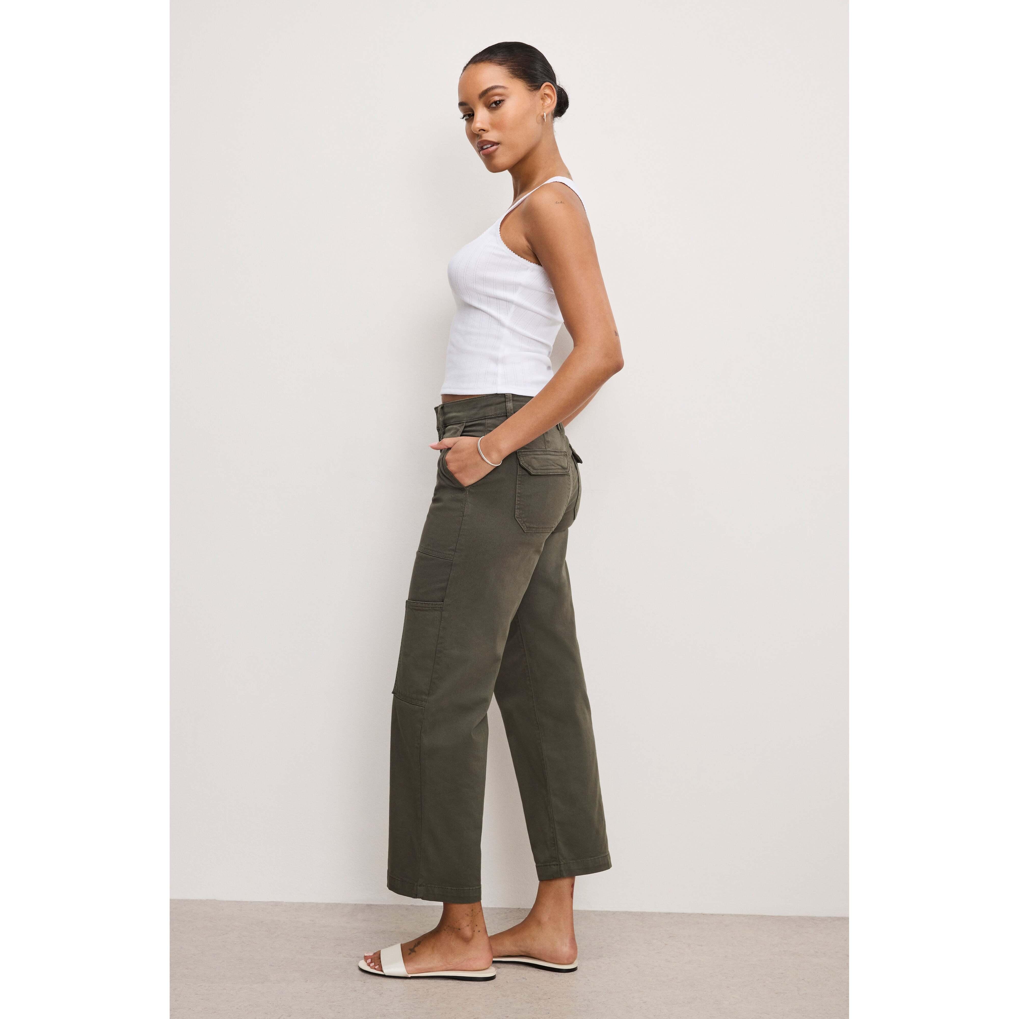 The Cargo Cropped Twill Pants offer a fresh take on utility with a relaxed fit and practical pockets. Stylish and functional, theyre made for all-day wear and easy versatility. High-rise Straight cropped legs Gap-proof waistband Reinforced belt loops Tummy smoothing technology Front and back pockets Carpenter pocket details Inseam: 26. 5 Fabric: 98% Cotton, 2% Elastane | Womens Cargo Cropped Twill Pants (Fatigue, Size 14