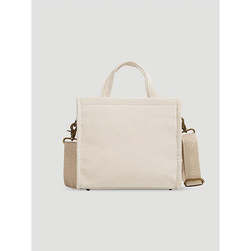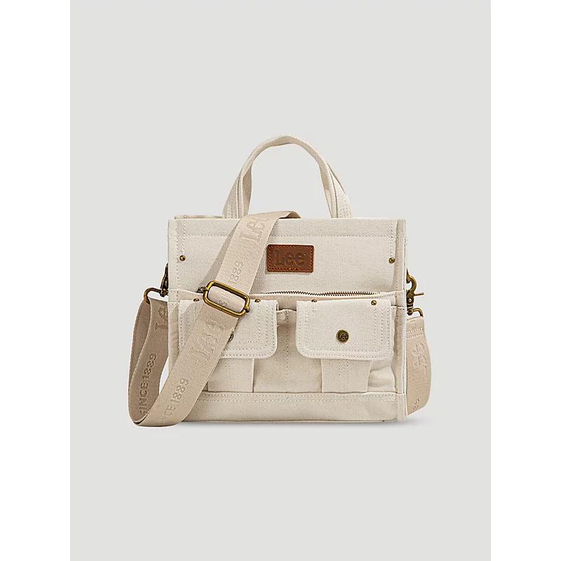 "A matching set, all in one. This iconic tote bag comes with a zippered pocket and an open pocket, plus a matching detachable mini pouch for a versatile way to carry all your belongings. With an adjustable crossbody included and a subtle leather trim, it’s designed to accommodate all your plans in style. Size Dimensions: 8""(W) x 3"" (D)x 6""(H) Leather LEE logo on the front pocket Detachable mini pouch Inside of the bag includes a zippered pocket and an open pocket Detachable and adjustable crossbody strap included Made of denim canvas and PU leather trimmede" Cotton Canvas. Tan. One Size.