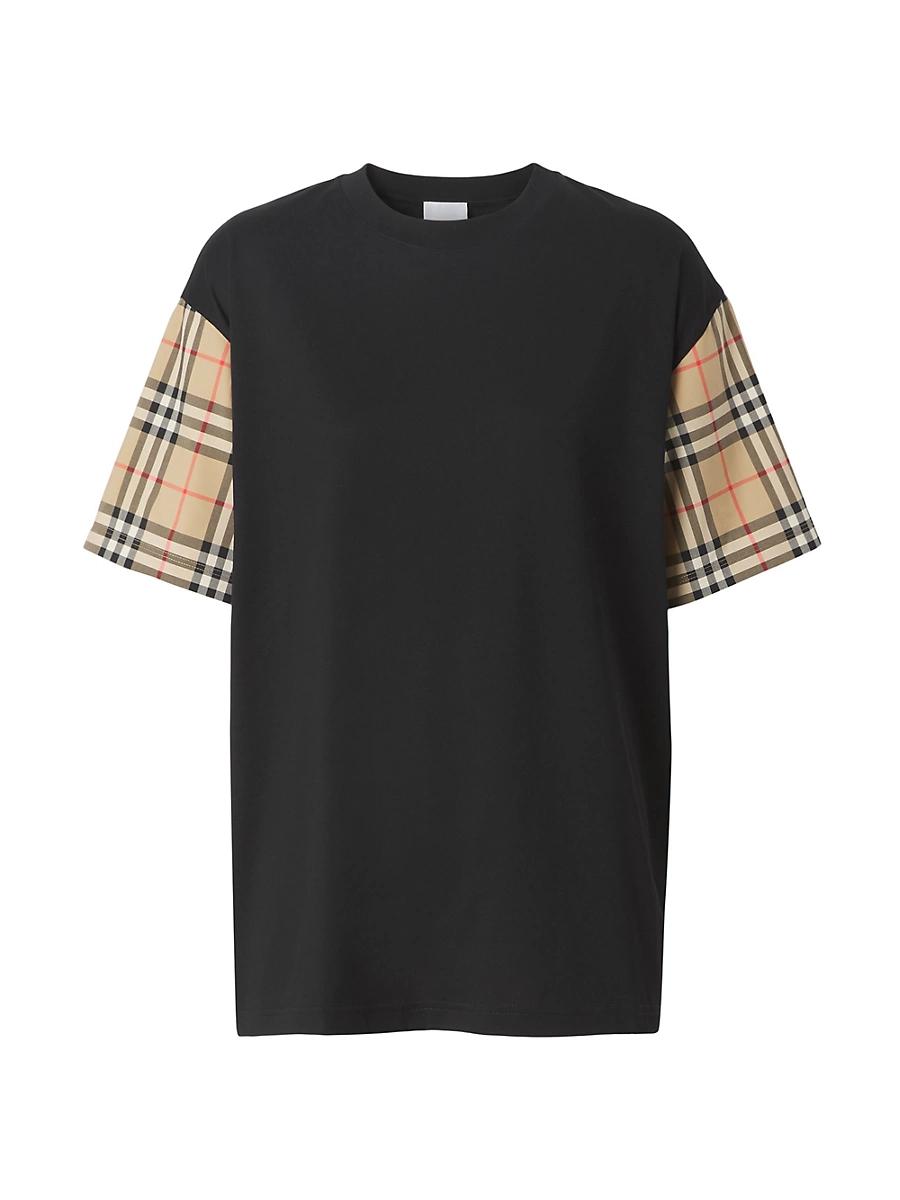 Boxy pullover T-shirt with the brands signature check pattern at sleeves. Crewneck Drop shoulders Short sleeves Pullover style 100% cotton Machine wash Made in Portugal SIZE & FIT About 27.5 from shoulder to hem Model measurements: 510 tall Model is wearing a US size Small ABOUT THE BRAND Founded in 1856 by 21-year-old Thomas Burberry, the brand set out with a mission to stylishly protect against British weather-and Burberrys iconic trench coat was born. In the 1920s, its renowned check pattern was introduced as the coats lining. The heritage brand now offers handbags, beauty and kids ready-to-wear, and under Creative Director Riccardo Tisci, the brand continues to evolve and create timelessly classic pieces. Advanced Designer - Burberry > Burberry > Saks Fifth Avenue > Barneys. Burberry. Color: Black. Size: Large.
