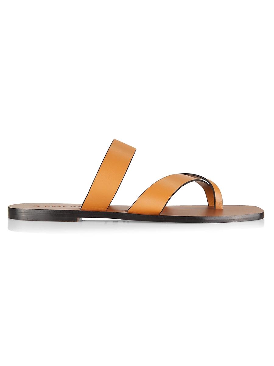Crafted of leather, these Carter slip-on sandals from A.Emery are styled with an open toe and crisscross straps. Open toe Slips on Leather upper Leather footbed Leather/rubber sole Imported. Womens Shoes - Workshop Shoes > A.emery > Saks Fifth Avenue > Barneys. A.Emery. Color: Deep Tan. Size: 5.