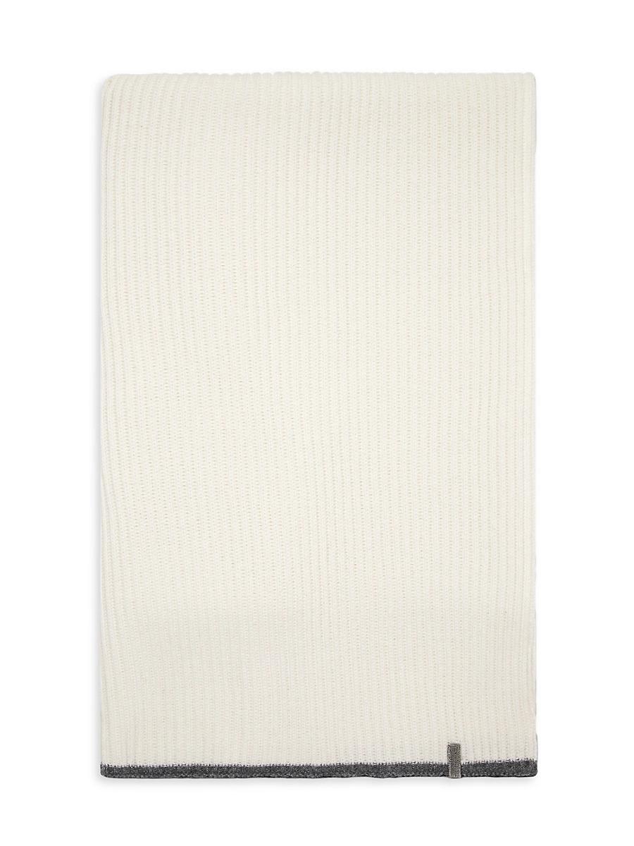 Cashmere English rib knit scarf with monili. Scarf measures approx. 70 cm (27.56) x 235 cm (92.52) Rib knit Nickel-free monili decoration Hand wash only, do not bleach. Dry garment on a horizontal surface, do not tumble dry. Iron at low temperature. Alternatively, delicately dry clean garment 100% Cashmere Made in Italy. Lsd Rtw - Brunello Cucinelli Rtw > Brunello Cucinelli > Saks Fifth Avenue > Barneys. Brunello Cucinelli. Color: Panama.