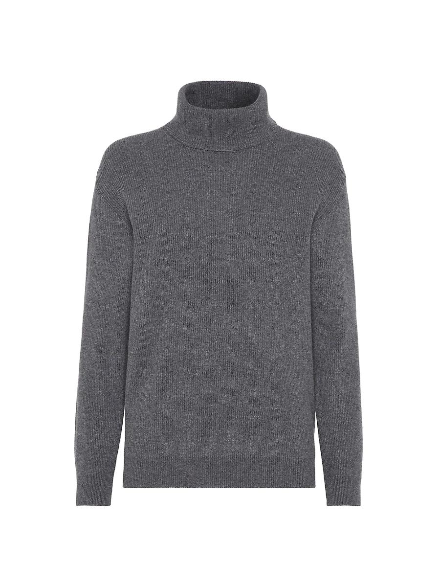 Cashmere English rib turtleneck sweater with monili. High collar Drop shoulder English rib Nickel-free monili decoration Hand wash only, do not bleach. Dry garment on a horizontal surface, do not tumble dry Iron at low temperature. Alternatively, delicately dry clean garment 100% cashmere Made in Italy. Lsd Rtw - Brunello Cucinelli Rtw > Brunello Cucinelli > Saks Fifth Avenue > Barneys. Brunello Cucinelli. Color: Lead. Size: XS.
