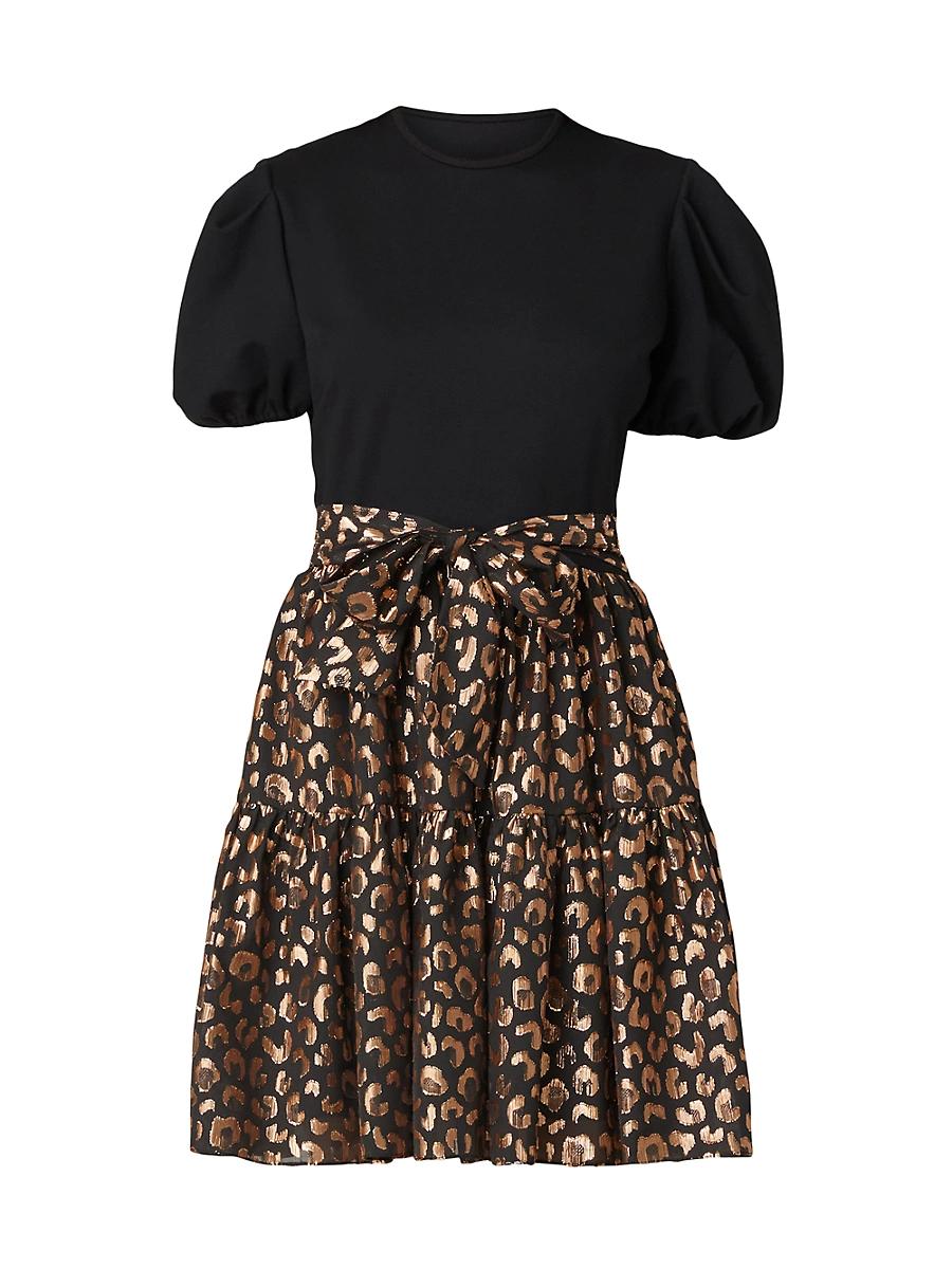 Shoshannas Cecilla minidress showcases a fitted T-shirt bodice with crewneck and puff sleeves paired with a metallic cheetah print on the tiered skirt. Crewneck Short puff sleeves Tie-waist Pulls over 70% polyester/30% metallic thread Lining: 100% polyester Dry clean Imported SIZE & FIT About 35 from shoulder to hem Model measurements: 510 tall Model is wearing a US size 4. Dress Collections - Contemporary Dresses > Shoshanna > Saks Fifth Avenue > Barneys. Shoshanna. Color: Jet Bronze. Size: 10.