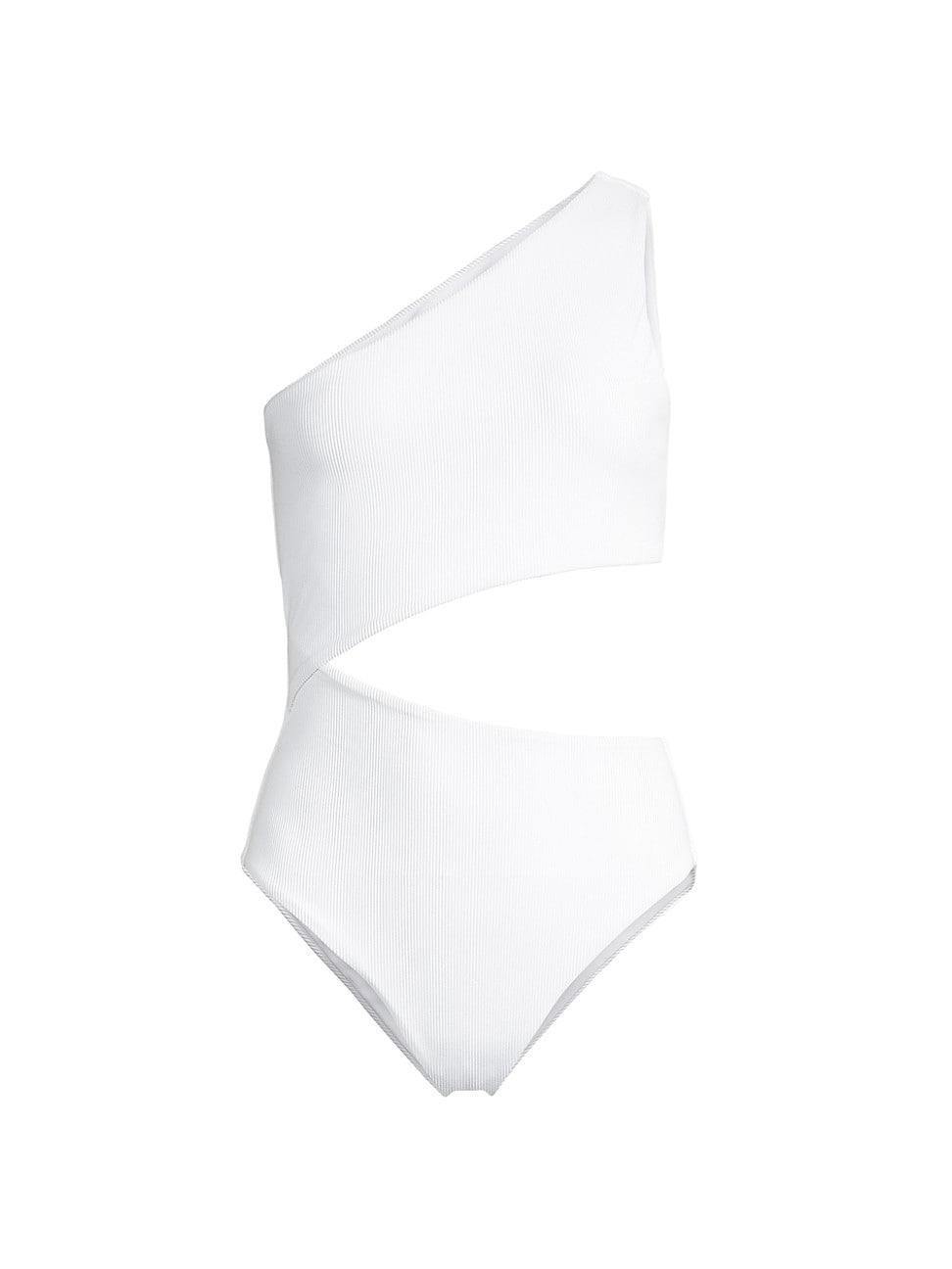 A strapless one-piece swimsuit featuring a flirty side cutout. Pull on 82% polyester 18% spandex Hand wash Made in USA SIZE & FIT Model measurements: 510 tall Model is wearing a US size Small. Outerwear And Swimwear - Contemporary Swim > Beach Riot > Saks Fifth Avenue > Barneys. Beach Riot. Color: White. Size: Large.
