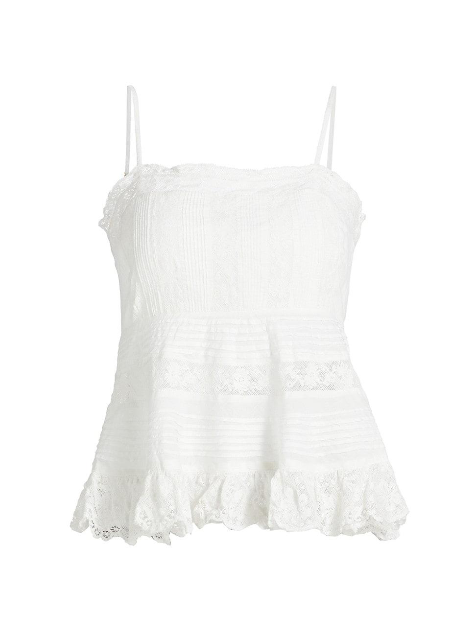 LoveShackFancys Charlieann top is crafted of cotton with romantic lace panels. This straight-neck design features adjustable spaghetti straps and a flutter hem. Straightneck Adjustable spaghetti straps Pulls over 100% cotton Hand wash Imported SIZE & FIT About 23.75 from shoulder to hem Bust, about 30 Model measurements: 510 tall Model is wearing a US size Small Please Note: Compared to the Saks Size Guide, this style measures small. Contemporary Sportswear - Trend > Loveshackfancy > Saks Fifth Avenue > Barneys. LoveShackFancy. Color: Bright White. Size: 00.
