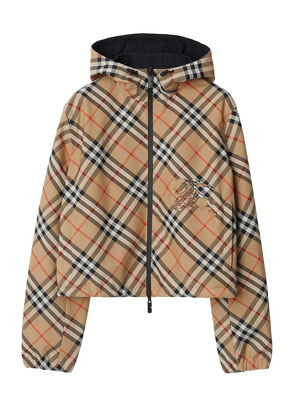 Burberrys short jacket features a drawcord hood and the labels signature check print. Logo embroidery at the waist and welt pockets complete the look. Hooded Long sleeves Side welt pockets Front-zip closure Shell: 100% polyester Lining: 100% polyamide Dry clean Imported SIZE & FIT Model measurements: 510 tall Model is wearing a US size Small This brand fits slightly larger. Consider ordering a size down. ABOUT THE BRAND Founded in 1856 by 21-year-old Thomas Burberry, the brand set out with a mission to stylishly protect against British weather-and Burberrys iconic trench coat was born. In the 1920s, its renowned check pattern was introduced as the coats lining. The heritage brand now offers handbags, beauty and kids ready-to-wear, and under Creative Director Daniel Lee, the brand continues to evolve and create timelessly classic pieces. Advanced Designer - Burberry > Burberry > Saks Fifth Avenue > Barneys. Burberry. Color: Sand Check. Size: Medium.