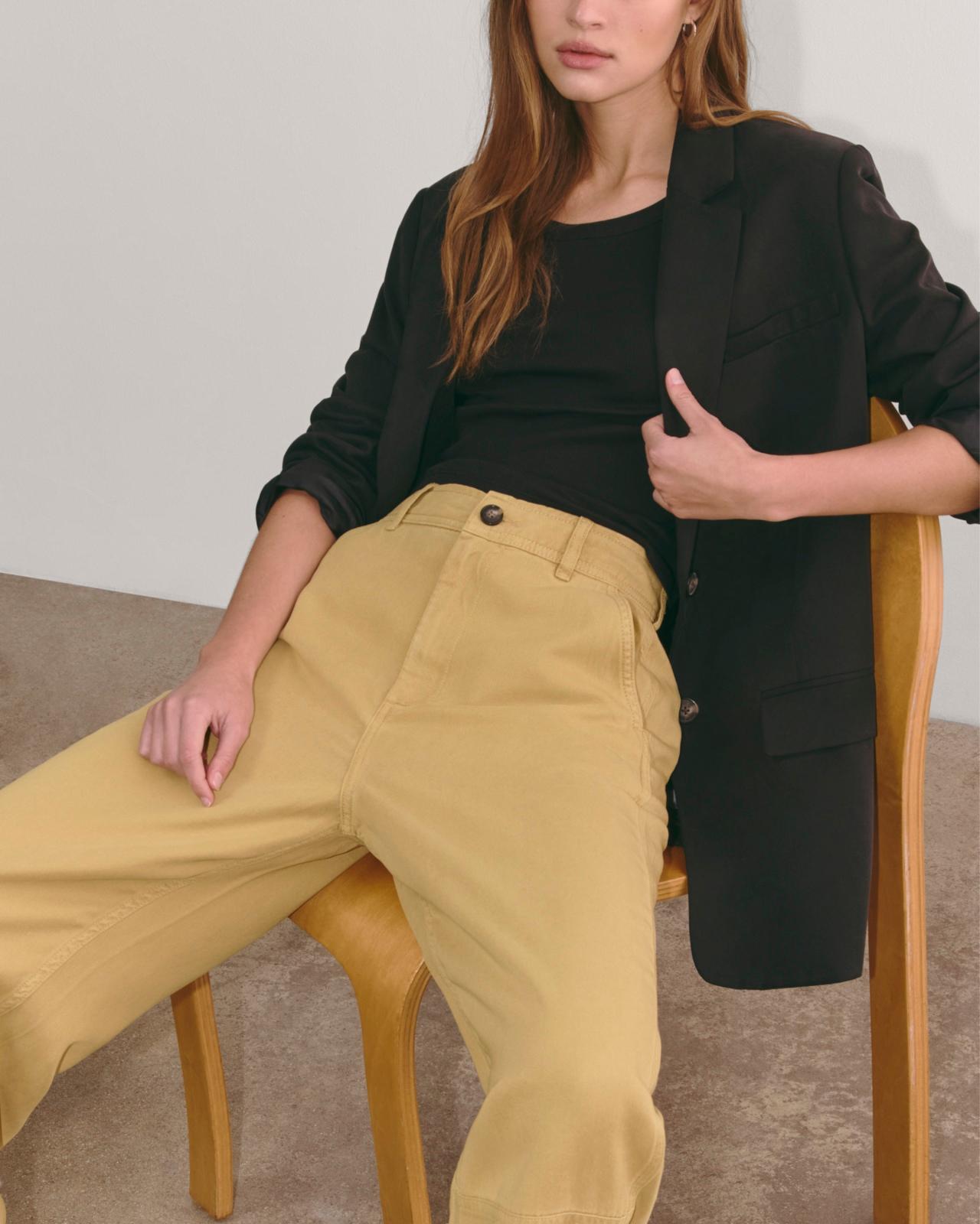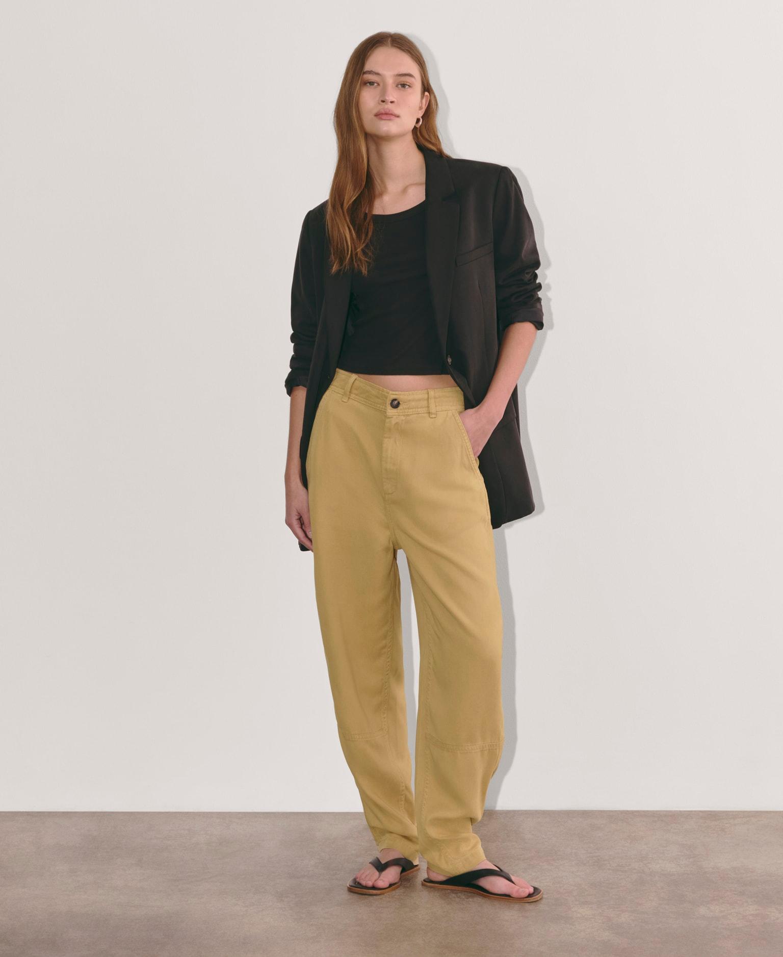You better believe it’s like butter. Our Chino in Buttersoft is a high-waisted pant crafted in a buttery soft, 100% TENCEL™ Lyocell fabric. It features a cool curved leg (similar to the Utility Barrel Pant) and asymmetrical back pockets: one with a button-back flap pocket and one with a slip pocket. These pants are slouchy, so if you want a slimmer fit, try sizing down.