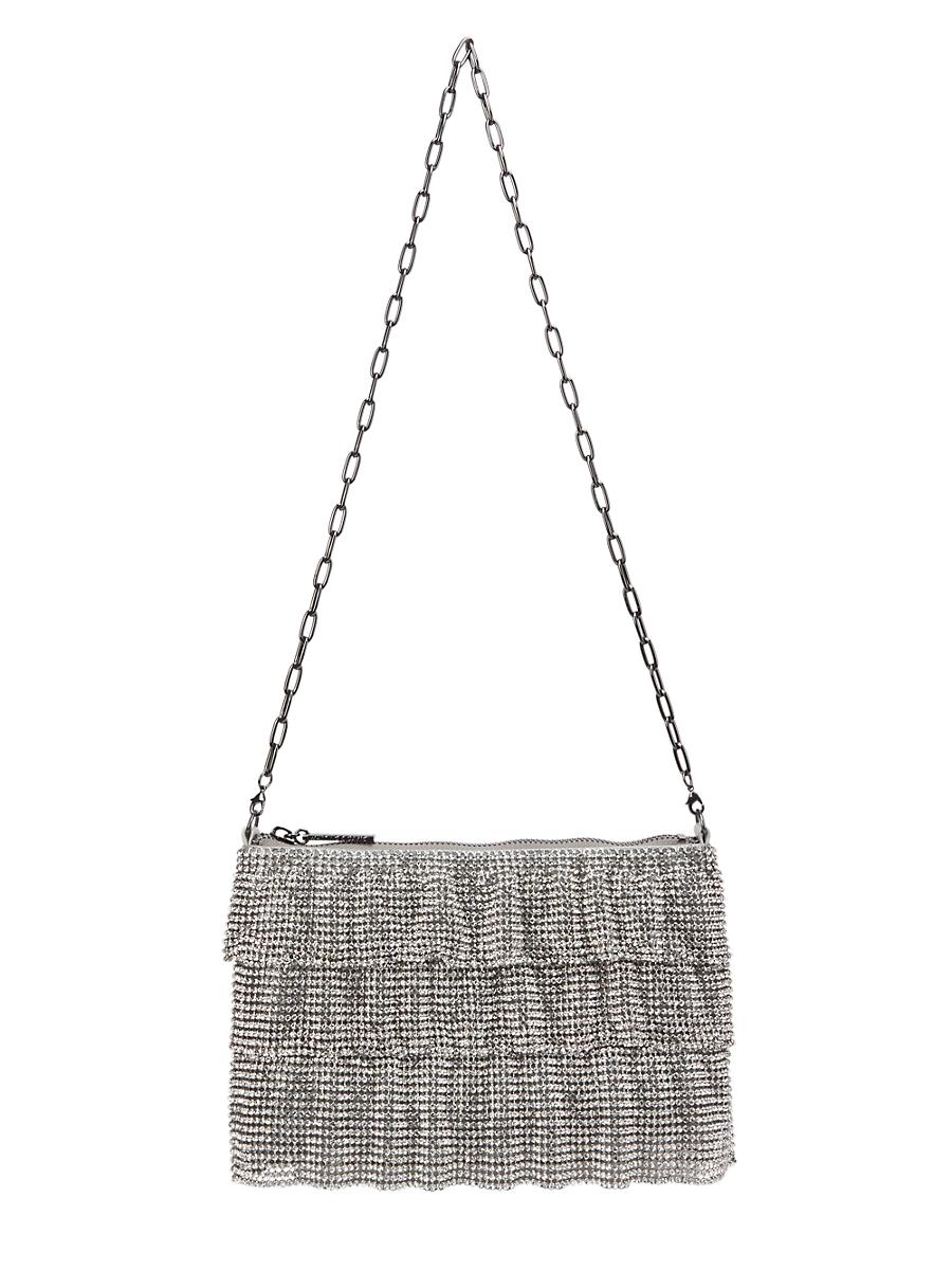 Whiting & Daviss Chloe crossbody mesh bag is designed with a removable strap and secure top zip closure. Removable chain strap Interior: one slip pocket Top zip closure Brass Imported SIZE About 9.5W x 5.5H x 1.5D Removable chain strap: about 14 drop. Handbags - Contemporary Handbags > Whiting & Davis > Saks Fifth Avenue > Barneys. Whiting & Davis. Color: Pewter.