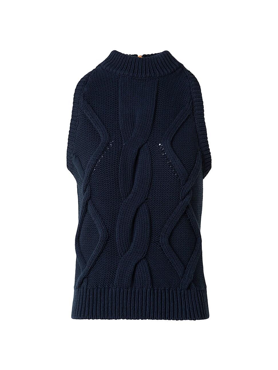 Akris puntos chunky cotton-blend cable knit top flaunts a mock turtleneck and rib-knit trim, finished with goldtone zip closure with signature ring pull. Mock turtleneck Sleeveless Rib-knit trim Back zip closure 91% cotton/9% polyester Dry clean Imported SIZE & FIT Model measurements: 510 tall Model is wearing a US size 4 ABOUT THE BRAND Founded in 1922 in St. Gallen, Switzerland, the name Akris was derived from founder Alice-Kriemler Schochs initials. Akris punto was later launched in 1995 with a relaxed, understated mindset. With a range of contemporary looks including architectural silhouettes, graphic prints and colorblocking, each piece is finished with an athletic edge. Designer Lifestyle - Akris Punto > Akris Punto > Saks Fifth Avenue > Barneys. Akris punto. Color: Navy. Size: 12.