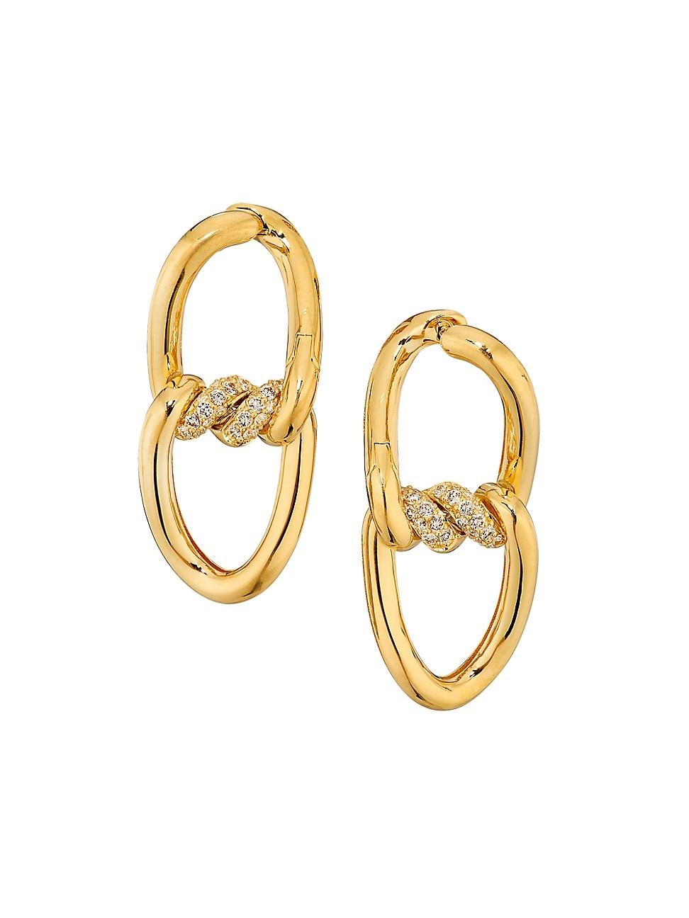 From the Cialoma Collection. Crafted of polished 18K yellow gold, Roberto Coins small chain link earrings shimmer with pav diamonds. The acclaimed designer signs each piece with a single ruby placed in a concealed location. Diamonds, 0.35 tcw Diamond color grade: G-H Diamond clarity grade: SI 18K yellow gold Leverback Made in Italy SIZE About 0.59W x 1.18L. Fine Jewelry - Roberto Coin Asset > Roberto Coin > Saks Fifth Avenue > Barneys. Roberto Coin. Color: Yellow Gold.