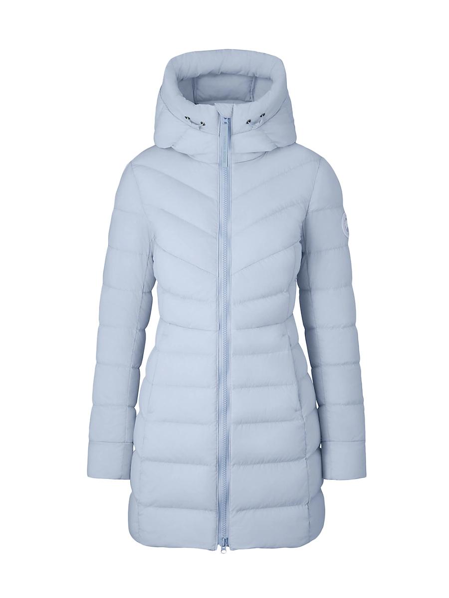 Canada Gooses Clair weather-resistant hooded down coat is crafted of stretch fabric and styled with horizontal quilting. Attached drawcord hood Long sleeves, elasticized cuffs Front zip pockets Interior slip-off backpack shoulder straps Interior zip pocket Two-way zip closure 87% nylon/13% spandex Fill: 90% down/10% feathers 750 fill power Machine wash Imported SIZE & FIT About 34 from shoulder to hem Model measurements: 510 tall Model is wearing a US size Small ABOUT THE BRAND Since its launch in 1957, Canada Gooses durable, ultra-warm parkas have become cold-weather staples worldwide. Using strong technical fabric, sustainably sourced down insulation and fur trim, the coats are designed to withstand extreme temperatures. Adapting to all seasons, the label designs luxe lightweight jackets, vests and accessories-and even cozy knit layers. Outerwear And Swimwear - Canada Goose > Canada Goose > Saks Fifth Avenue > Barneys. Canada Goose. Color: Dawn Blue. Size: Large.
