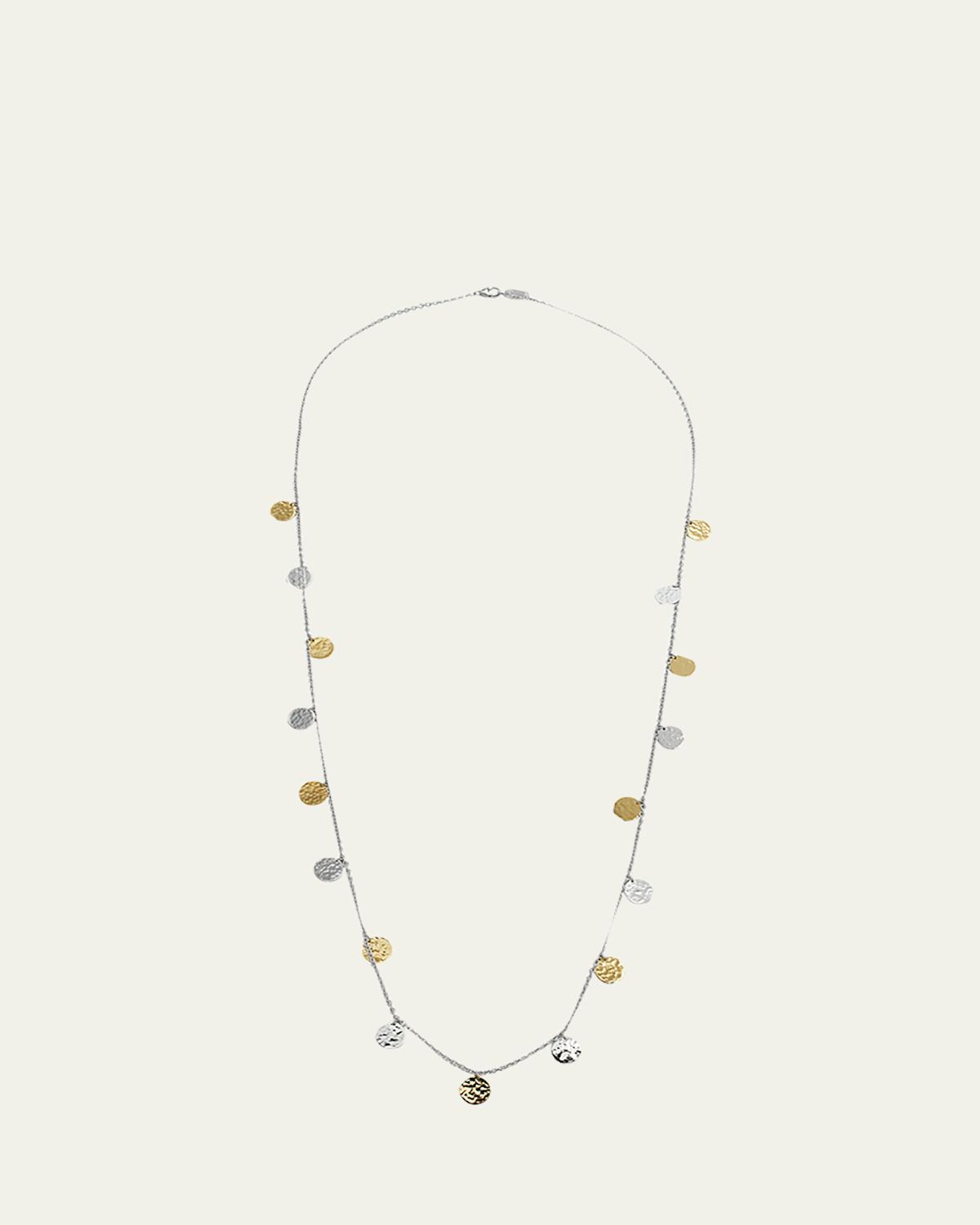 From the Classico Collection. An artful display of sterling silver and 18K yellow gold hammered discs shimmy on a delicate chain. 18K yellow gold Sterling silver Imported SIZE Length, about 33 ABOUT THE BRAND Italian artist and designer Ippolita Rostagno founded her luxury jewelry house in New York City in 1999. Having studied sculpture and ceramics at the Istituto dArte in Florence, Rostagno embraces organic shapes and a fluid, timeless aesthetic. Today, her colorful creations are designed for everyday wear and finely crafted in18K gold, silver and precious stones. Fashion Jewelry - Ippolita Silver > Ippolita > Saks Fifth Avenue > Barneys. Ippolita. Color: Silver Gold.