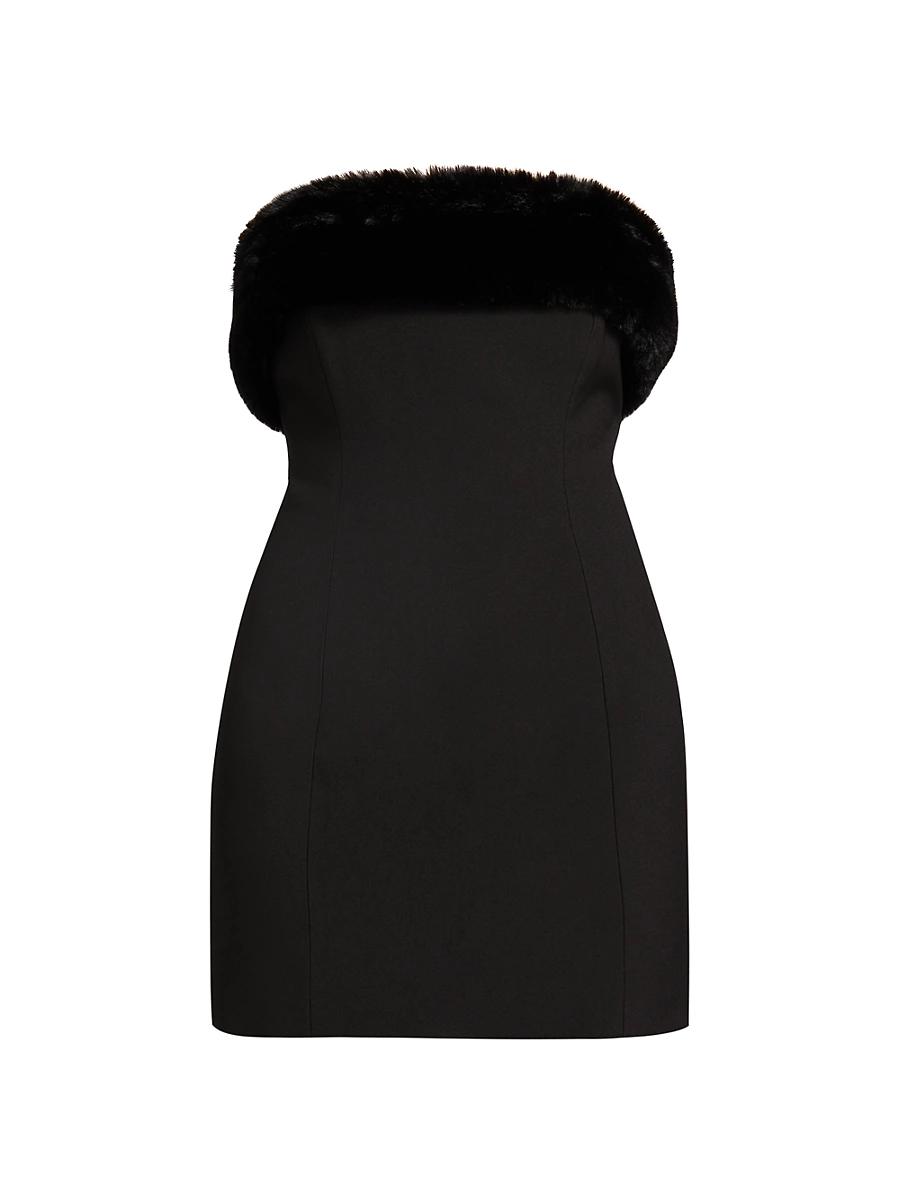 This Clause minidress from Ronny Kobo is styled with faux fur trim at the neckline. Strapless Back zip closure 75% polyester/5% spandex/20% viscose Fur type: faux Dry clean Imported SIZE & FIT About 32 from shoulder to hem Model measurements: 510 tall Model is wearing a US size Small. Contemporary Sportswear - Trend > Ronny Kobo > Saks Fifth Avenue > Barneys. Ronny Kobo. Color: Black. Size: Small.