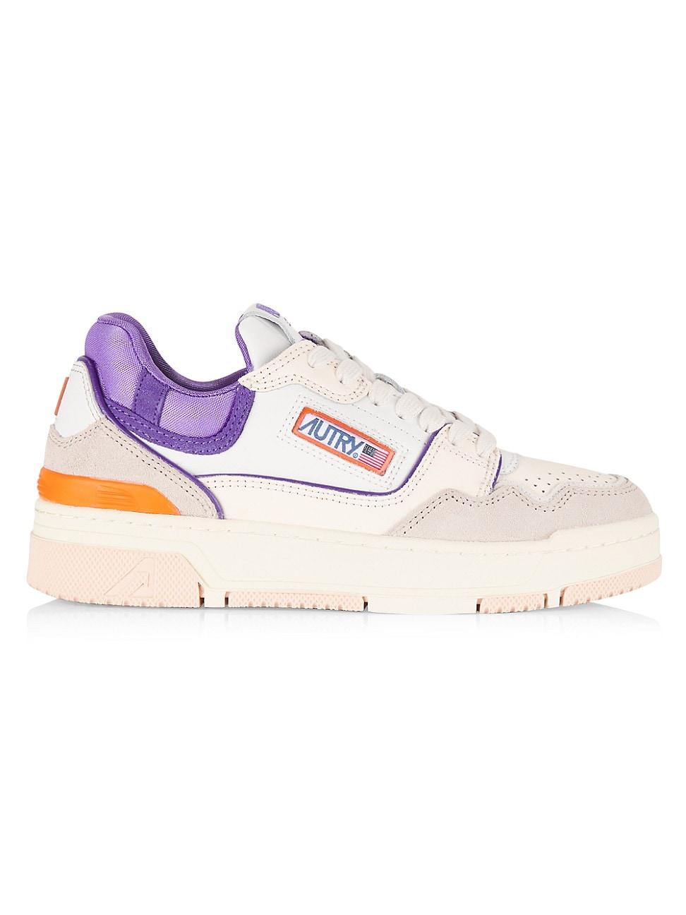 Autrys CLC sneakers are designed in a basketball court style. This pair is crafted of leather and finished with suede inserts. Round toe Lace-up style Leather/textile upper Leather/textile lining Synthetic sole Imported SIZE Platform: about 1. Womens Shoes - Sneakers > Autry > Saks Fifth Avenue > Barneys. Autry. Color: White Violet Orange. Size: 10.