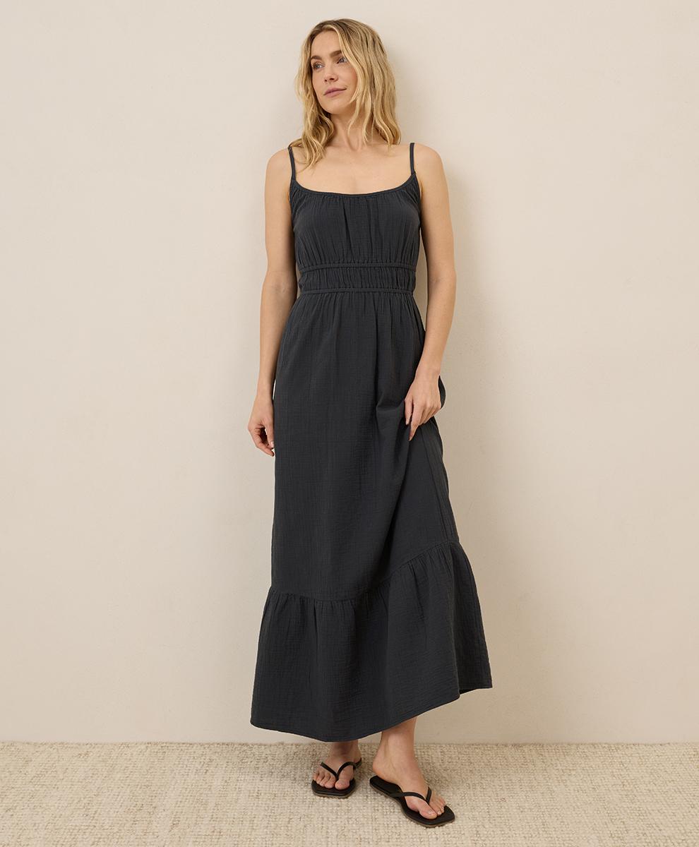 Pact Organic Womens Black Coastal Double Gauze Cami Maxi Dress