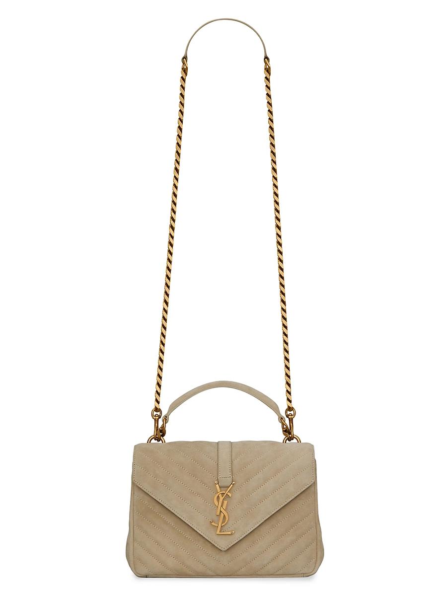 Bag decorated with chevron-quilted overstitching and metal YSL initials, featuring a top handle and removable chain and leather shoulder strap, can be worn crossbody. Dimensions: 24 x 17 x 6.5 cm / 9.4 x 6.6 x 2.5 inches Bronze-toned metal hardware Leather lining Magnetic snap closure Interior: two main compartments separated by a central zip pouch, one card slot Shoulder strap drop: 55 cm. Lsd Handbags - Saint Laurent > Saint Laurent > Saks Fifth Avenue > Barneys. Saint Laurent. Color: Brown.