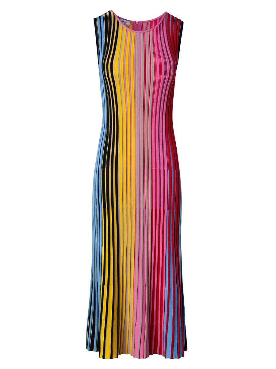 Crafted of fine virgin wool, Akris Puntos sleeveless midi-dress presents a rib-knit texture and vibrant colorblock print. Round neck Sleeveless Back-zip closure 100% virgin wool Dry clean Imported SIZE & FIT Model measurements: 510 tall Model is wearing a US size 4 Please Note: This item runs large. ABOUT THE BRAND Founded in 1922 in St. Gallen, Switzerland, the name Akris was derived from founder Alice-Kriemler Schochs initials. Akris punto was later launched in 1995 with a relaxed, understated mindset. With a range of contemporary looks including architectural silhouettes, graphic prints and colorblocking, each piece is finished with an athletic edge. Designer Lifestyle - Akris Punto > Akris Punto > Saks Fifth Avenue > Barneys. Akris punto. Size: 2.