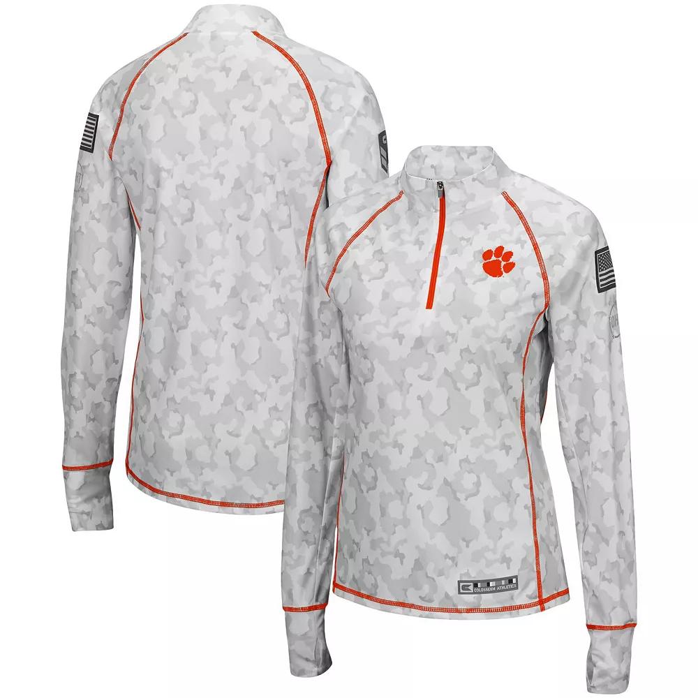 No matter where you watch the next Clemson Tigers game, make sure your look is as strong as ever in this OHT Military Appreciation Officer Arctic Camo 1/4-zip jacket. This piece of Colosseum gear features a distinct camo design and the Clemson Tigers logo is proudly displayed on the chest. Sport this over your go-to team tee for a complete look you will be proud to show off this season.No matter where you watch the next Clemson Tigers game, make sure your look is as strong as ever in this OHT Military Appreciation Officer Arctic Camo 1/4-zip jacket. This piece of Colosseum gear features a distinct camo design and the Clemson Tigers logo is proudly displayed on the chest. Sport this over your go-to team tee for a complete look you will be proud to show off this season.PRODUCT FEATURESScreen print graphicsEmbroidered fabric appliquesRubberized heat-sealed brand tag at hemTagless CollarOfficially licensedImportedBrand: ColosseumCamo design may vary with each jacketOperation Hat Trick (OHT) generates awareness and support for the recovery of wounded service members and veterans through the sale of branded merchandise and products. Proceeds are donated to select organizations that support the OHT mission.Material: 100% PolyesterLong sleeveMachine wash, tumble dry lowRounded droptail hemSublimated camo patternContrast-colored flatlock stitchingRaglan sleeves1/4-ZipThumbholes at cuffsMock neckLightweight jacket suitable for mild temperatures Color: White. Gender: female. Age Group: adult.