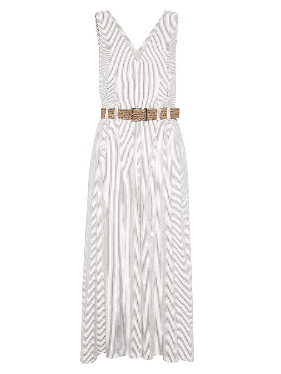 Comfort linen and cotton chalk stripe twill belted dress with monili. V-neck Back zip closure Detachable belt with loops Front pockets Double pleat Cotton lining Nickel-free monili decoration All metal parts are Nickel-free Request dry cleaning at specialist cleaners only, do not bleach. Do not tumble dry, iron at low temperature 56% linen, 42% cotton, 2% elastane Made in Italy. Lsd Rtw - Brunello Cucinelli Rtw > Brunello Cucinelli > Saks Fifth Avenue > Barneys. Brunello Cucinelli. Color: Tobacco. Size: Large.