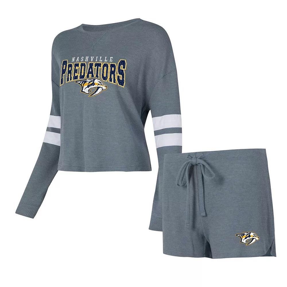 Womens Concepts Sport Charcoal Nashville Predators MeadowLong Sleeve T-Shirt & Shorts Sleep Set