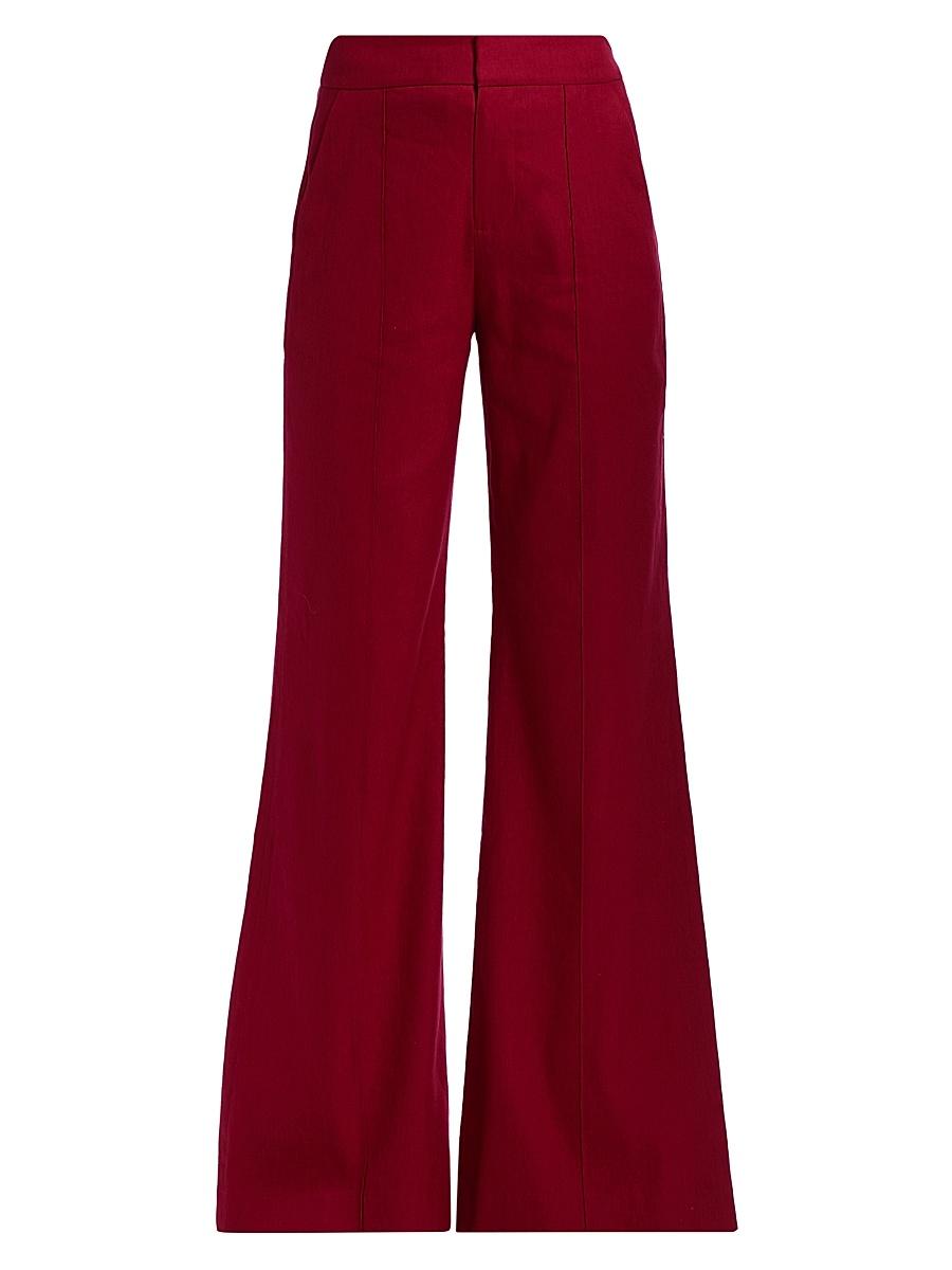 Made of a linen blend, Alice + Olivias Conry pants are cut in a wide-leg silhouette, styled with subtle front pleats. Banded waist Side slip pockets Back welt pocket Zip fly, hook-and-bar closure 56% linen/43% viscose/1% elastane Lining: 100% polyester Dry clean Imported SIZE & FIT Rise: about 11.25 Inseam: about 35.25 Leg opening: about 26 Model measurements: 510 tall Model is wearing a US size Small Please note: This item runs small. ABOUT THE BRAND Founder Stacey Bendet has been embraci