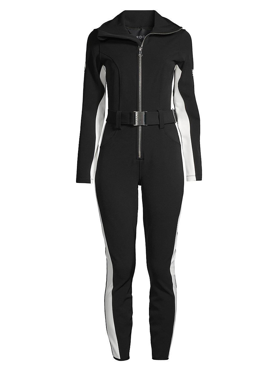 ONLY AT SAKS. Cordovas signature Cordova belted stripe ski suit is designed with contouring four-way stretch twill. This waterproof style features an oversized foldover collar, long sleeves, and skinny legs. Foldover collar Long sleeves Ski pass pocket Zip-front closure Removable belt 58% nylon, 32% polyester, 10% elastane Machine wash Made in Portugal SIZE & FIT This style is designed for a slim fit About 52 from shoulder to hem Rise, about 25 Inseam, about 27 Leg opening, about 8.5 Model measurements: 510 tall Model is wearing a US size 4. Outerwear And Swimwear - Down > Cordova > Saks Fifth Avenue > Barneys. Cordova. Color: Lichen. Size: XS.