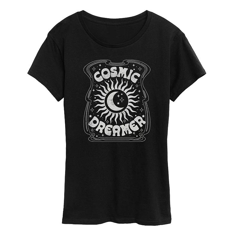 She will love showing off her style with this Womens Cosmic Dreamer Graphic Tee. FEATURES Short sleeves CrewneckFABRIC & CARE Solid Color: Cotton ; Heather Colors: Cotton/Polyester Machine wash Imported Size: Small. Color: Black. Gender: female. Age Group: adult.