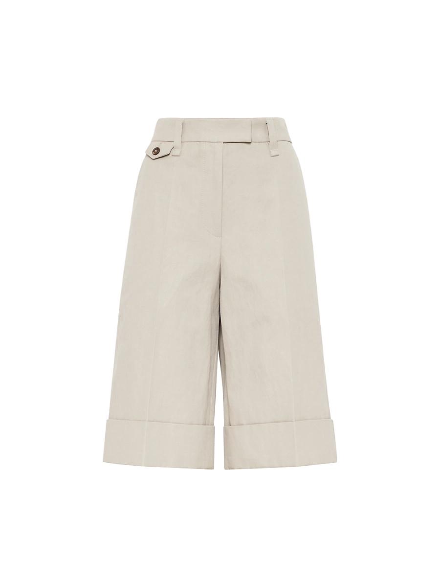 Cotton and linen cover sartorial long Bermuda shorts with monili. Zip closure with button, metal hooks and backing button Front pockets Back pockets Unlined Nickel-free monili decoration Request dry cleaning at specialist cleaners only, do not bleach. Do not tumble dry, iron at low temperature 76% cotton, 24% linen Made in Italy. Lsd Rtw - Brunello Cucinelli Rtw > Brunello Cucinelli > Saks Fifth Avenue > Barneys. Brunello Cucinelli. Color: Dessert. Size: 12.