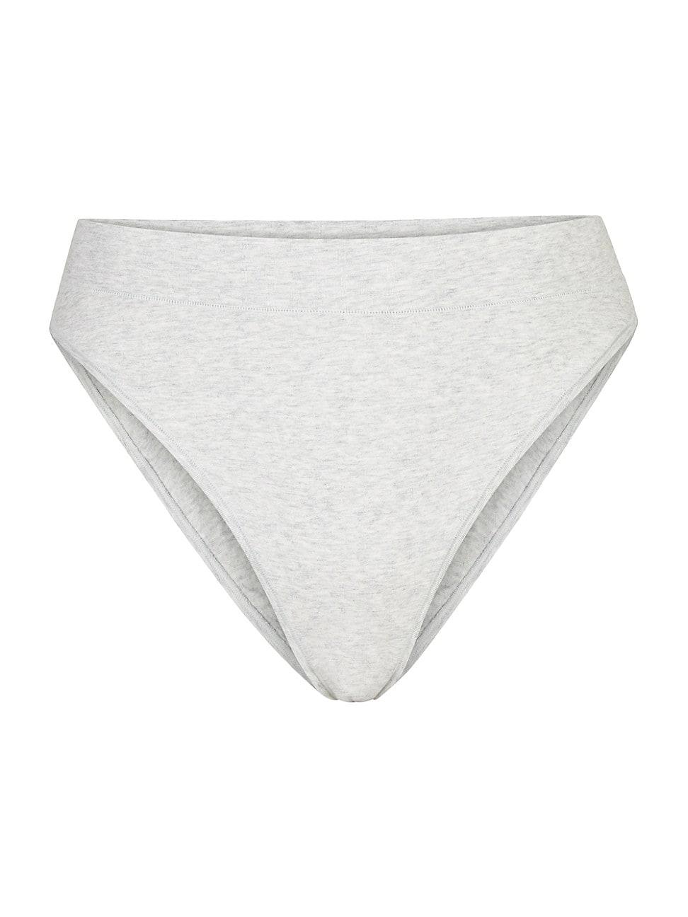 Co-founded by Kim Kardashian, Emma Grede, and Jens Grede in 2019, SKIMS innovative designs set new standards for every body. The Cotton Jersey Collection crafts everyday staples in soft, lightweight knits. Flaunting a pickstitch trim, this tanga-style brief is tailored with high-cut leg openings and a cheeky back. Elasticized waist Pulls on 90% cotton/10% spandex Hand wash Imported. Contemporary Sportswear - Skims > Skims > Saks Fifth Avenue > Barneys. SKIMS. Color: Light Heather Grey. Size: XXXL.