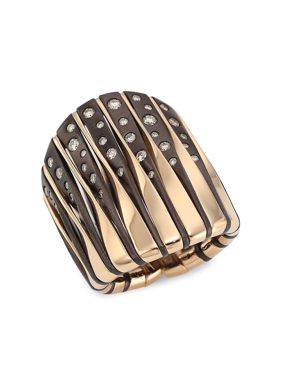 From the Coucher du Soleil Collection. Featuring a tapered silhouette, this chic ring is composed of 18K rose gold and bronze gypsy-set with sparkling round brown diamonds. Diamonds, 0.98 tcw Diamond clarity: VVS 18K rose gold/bronze Made in Italy SIZE Face width, about 1.25. Fine Jewelry - Designer Jewelry A > Vhernier > Saks Fifth Avenue > Barneys. Vhernier. Color: Rose Gold Bronze. Size: 7.