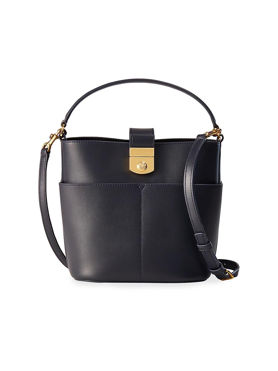 Crafted of leather, Veronica Beards Crest Lock bucket bag is designed with a top handle and an adjustable, removable shoulder strap. Top handle Adjustable, removable strap Dust bag Push-lock closure Leather Lining: polyester Imported SIZE About 5.5W x 11H x 9.8D. Handbags - Collection Handbags > Veronica Beard > Saks Fifth Avenue > Barneys. Veronica Beard. Color: Navy.