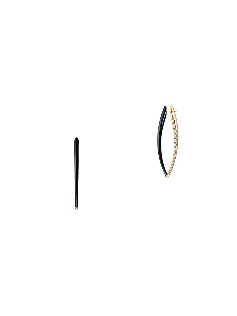 From the Cristina Collection. Signature geometric gold hoops in a chic two-tone design lined with sparkling diamonds and half-coated with glossy black enamel. Diamonds, 0.92 tcw Diamond color: GH Diamond clarity: VS+ Enamel 18K yellow gold Hinged post back Made in USA SIZE Drop, about 1.6. Fashion Jewelry - Fashion Designer > Melissa Kaye > Saks Fifth Avenue > Barneys. Melissa Kaye. Color: Yellow Gold.