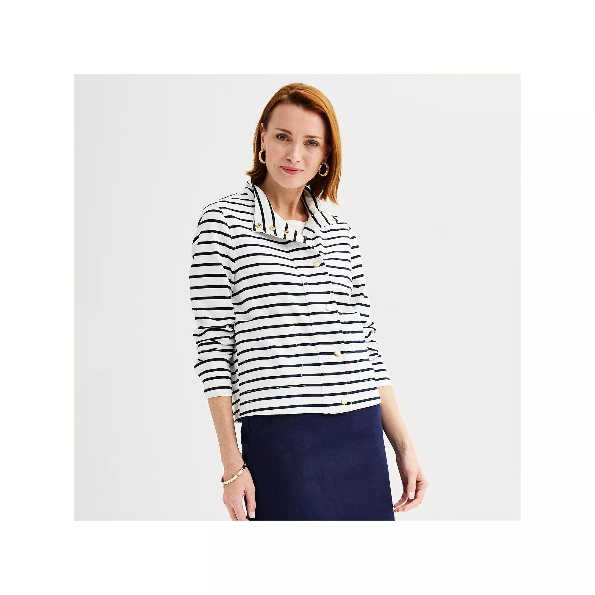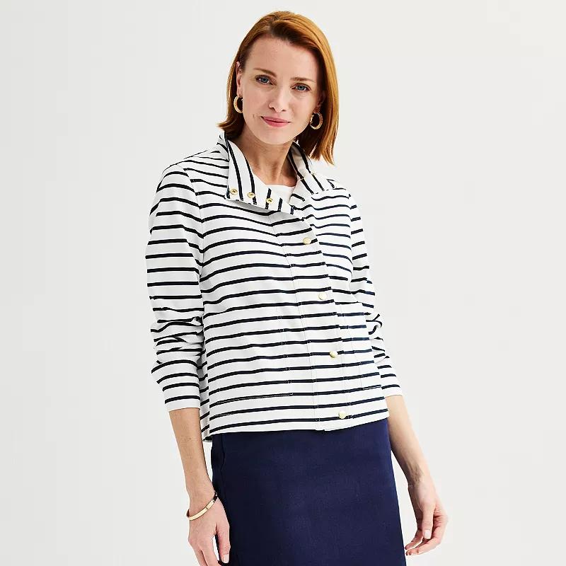 Put the finishing touches on your next look with this elegant Womens Croft & Barrow Button Snap Long Sleeve Ponte Jacket.Click on this WOMENS GUIDE to find the perfect fit and more! Put the finishing touches on your next look with this elegant Womens Croft & Barrow Button Snap Long Sleeve Ponte Jacket.Click on this WOMENS GUIDE to find the perfect fit and more! FEATURES Mockneck Long set-in sleeves Snap cuffs Snap closure 2 front pockets Straight hemFIT & SIZING 23 1/2-in. length from shoulder to hemFABRIC & CARE Rayon, polyester, spandex Machine wash and tumble dry low Imported Size: Large. Color: White. Gender: female. Age Group: adult.