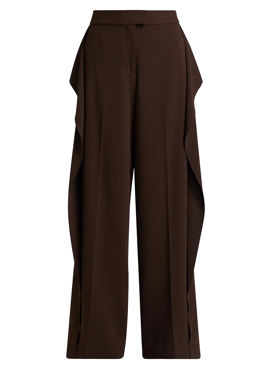 Crafted of structured crpe, Jason Wu Collections mid-rise pants showcase a sophisticated crease front and back welt pockets. This piece is elevated with a whimsical side ruffle that extends down the leg. Banded waistband Seamed front Ruffled trim Back welt pockets Zip fly, button closure 100% polyester Dry clean Imported SIZE& FIT This style is designed for a relaxed fit Rise: about 12.75 Waist: about 31.25 Inseam: about 35.25 Leg opening: about 24.5 Model measurements: 510 tall Model is wearing a US size 4. Designer Evening - Jason Wu > Jason Wu Collection > Saks Fifth Avenue > Barneys. Jason Wu Collection. Color: Bark. Size: 0.