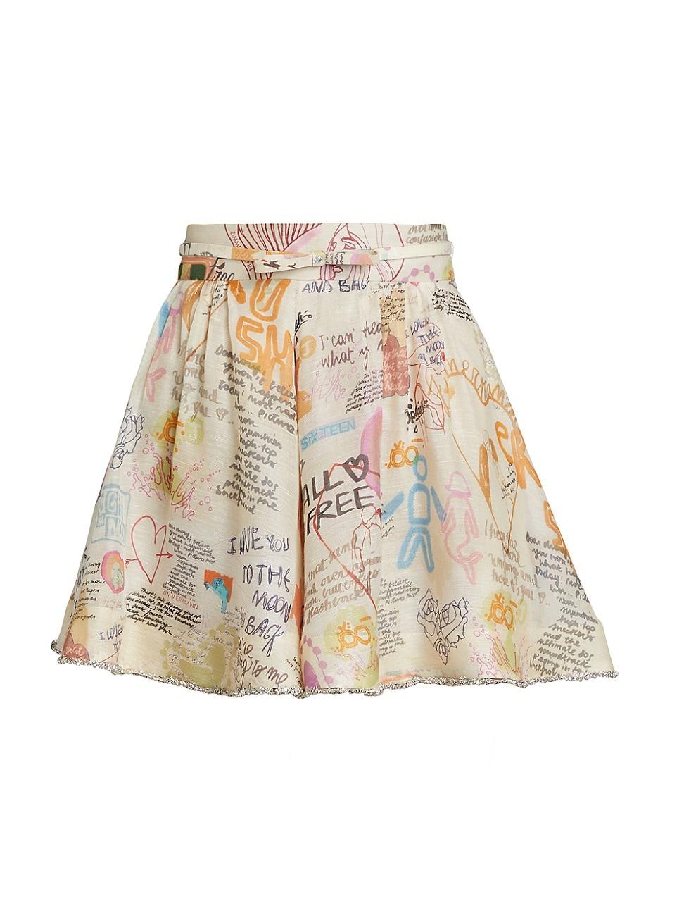 Crafted of linen and silk, Zimmermanns Crush belted skort is designed with an illustrated printand a metallic edge. Belted Side-seam pockets Concealed back zip closure 55% linen/45% silk Lining: 100% cotton Dry clean Imported SIZE & FIT Rise: about 12.5 Inseam: about 3 Model measurements: 510 tall Model is wearing a US size 4 ABOUT THE BRAND Australian founders and sister-duo Nicky and Simone Zimmermann design with a signature feminine aesthetic, each piece rife with tiers of fabric, rich embroidery and splashy prints. From ruffled bikinis and beachwear to luxe, intricately patterned maxi (and mini) dresses, everything is overtly romantic in the most elevated, effortless way. Contemporary Sportswear - Zimmermann > Zimmermann > Saks Fifth Avenue > Barneys. Zimmermann. Color: Dear Diary. Size: 2.
