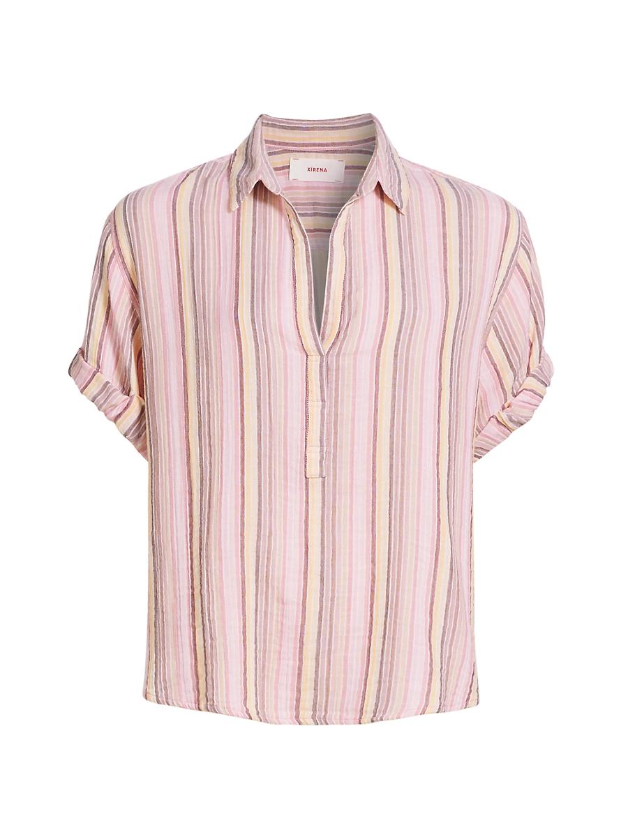 Cut in a relaxed silhouette, this Cruz top from Xirena is designed with contrast vertical stripes. Johnny collar Cuffed short sleeves Pulls over 100% cotton Machine wash Made in USA SIZE & FIT About 25.75 from shoulder to hem Model measurements: 510 tall Model is wearing a US size Small. Contemporary Sportswear - Contemporary Collections > Xirena > Saks Fifth Avenue > Barneys. Xirena. Color: Sunrays. Size: XS.