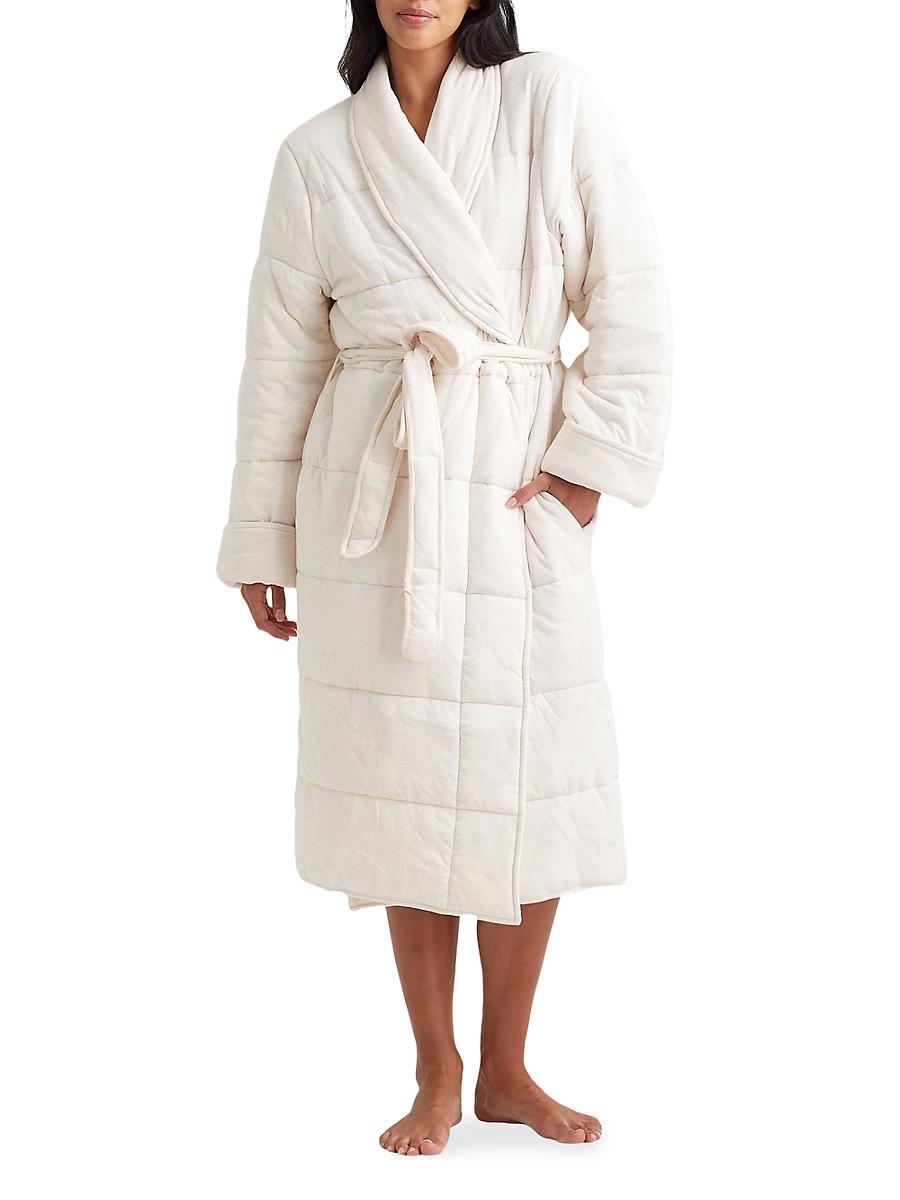 Crafted of quilted cotton, the Cuddle Puffa midi-length robe from Papinelle is styled with a shawl collar, long sleeves, and a self-tie belt. Shawl collar Long sleeves Side slip pockets Self-tie belt 100% cotton Lining: 100% cotton Fill: 100% polyester Machine wash Imported SIZE & FIT About 44 from shoulder to hem Model measurements: 510 tall Model is wearing a US size 4. Lingerie - Modern Sleepwear > Papinelle > Saks Fifth Avenue > Barneys. Papinelle. Color: Sea Salt. Size: XS.