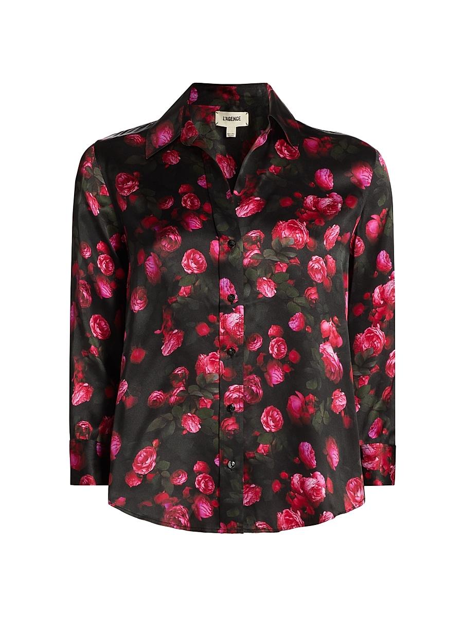 Crafted of silk, L’Agence's Dani button-front blouse is styled with a romantic rose print and three-quarter-length sleeves.Point collarSplit neckThree-quarter-length sleevesButton-front closure100% silkDry cleanImportedSIZE & FITAbout 26" from shoulder to hemModel measurements: 5'10" tallModel is wearing a US size SmallABOUT THE BRANDFounded in 2008, L’Agence marries Southern California ease with chic Parisian style. Using luxurious fabrics, the Los Angeles-based label delivers feminine collections that are both timeless and versatile. In 2015, the label launched a denim line in a range of sleek, impeccably tailored cuts.